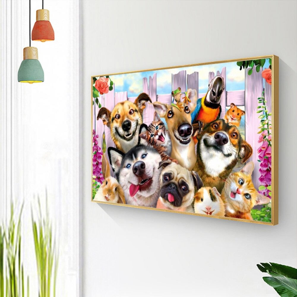 Funny Cats Dogs 5D DIY Full Square Drill Rhinestones Diamond Painting Mosaic Kits Art Craft Home Decor Gifts