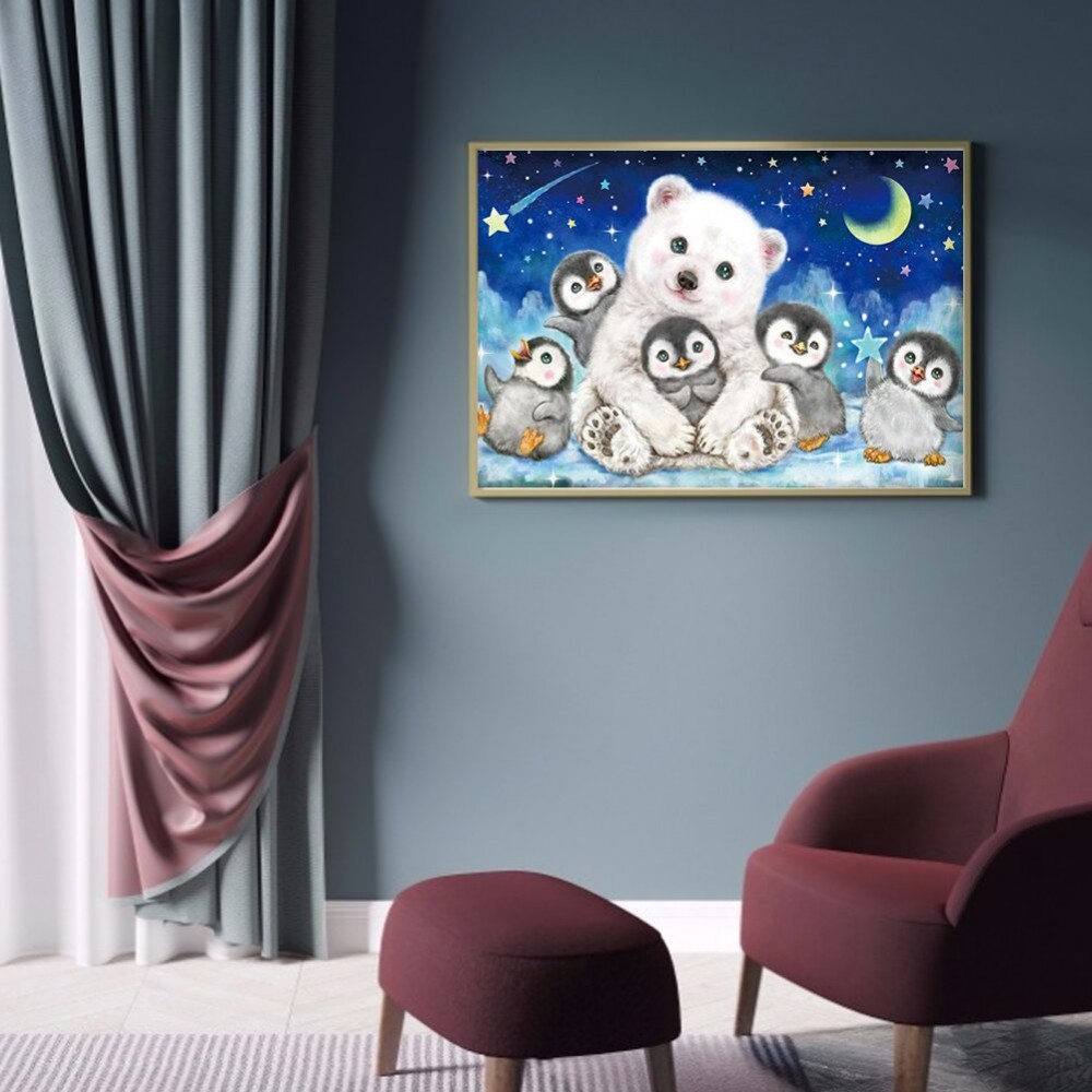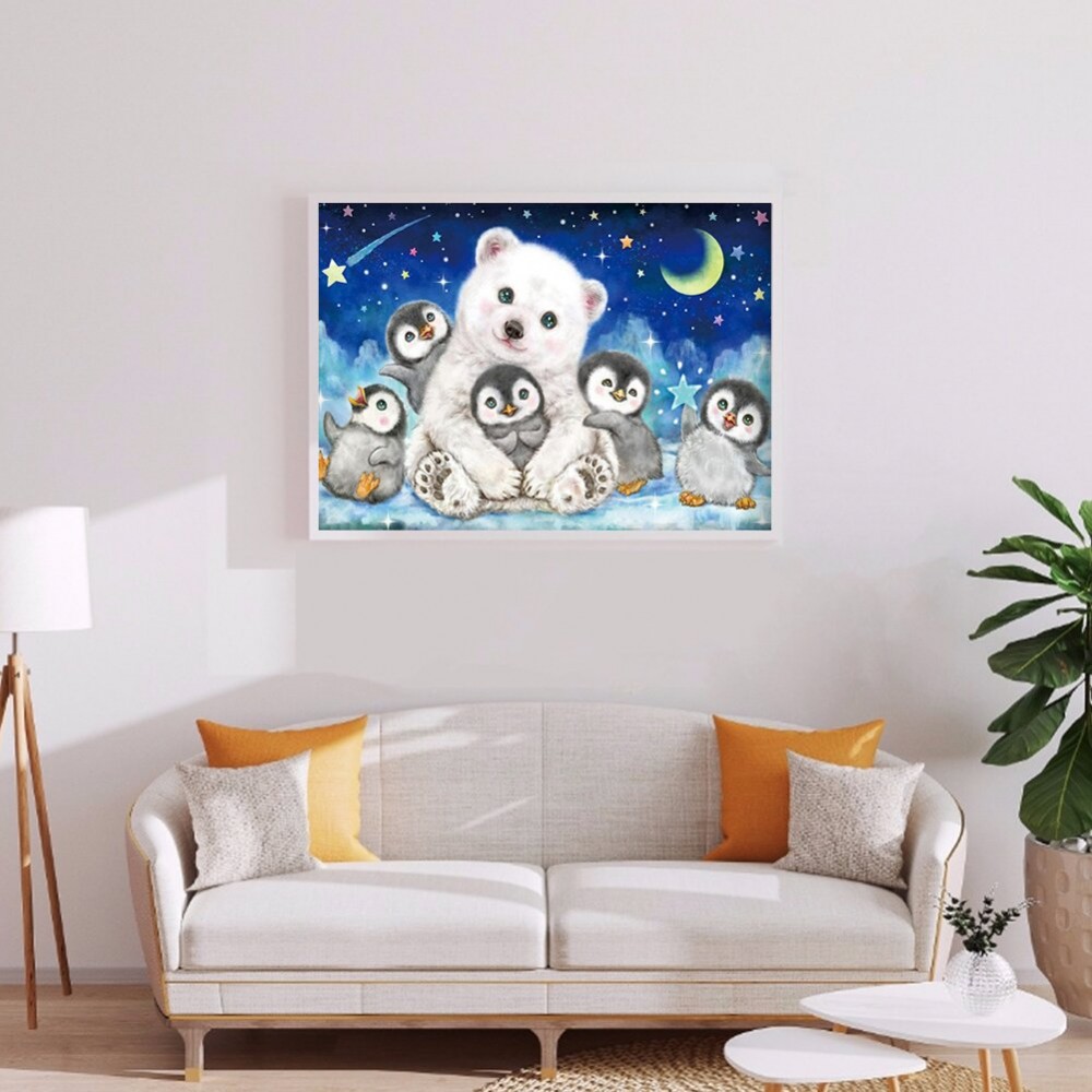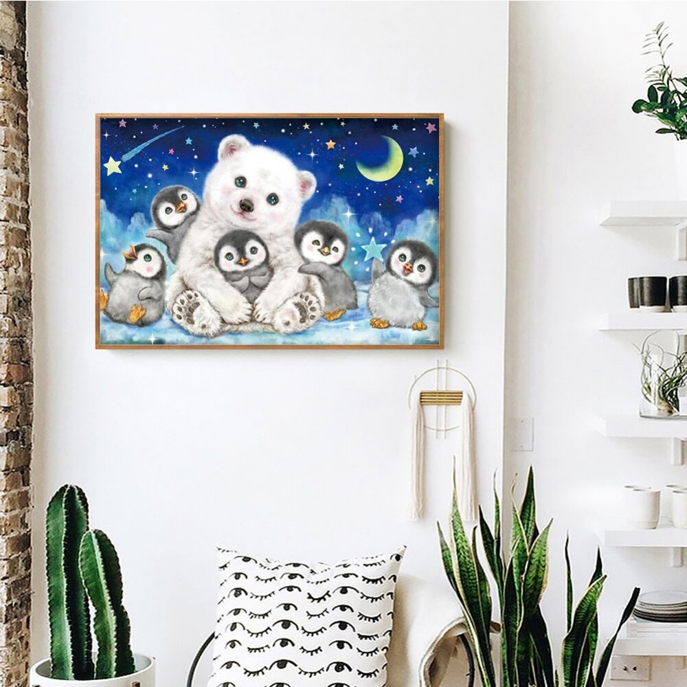 5D DIY Full Round Drill Diamond Painting Bear Little Penguin Resin Rhinestone Mosaic Wall Art Picture Kit Home Decoration