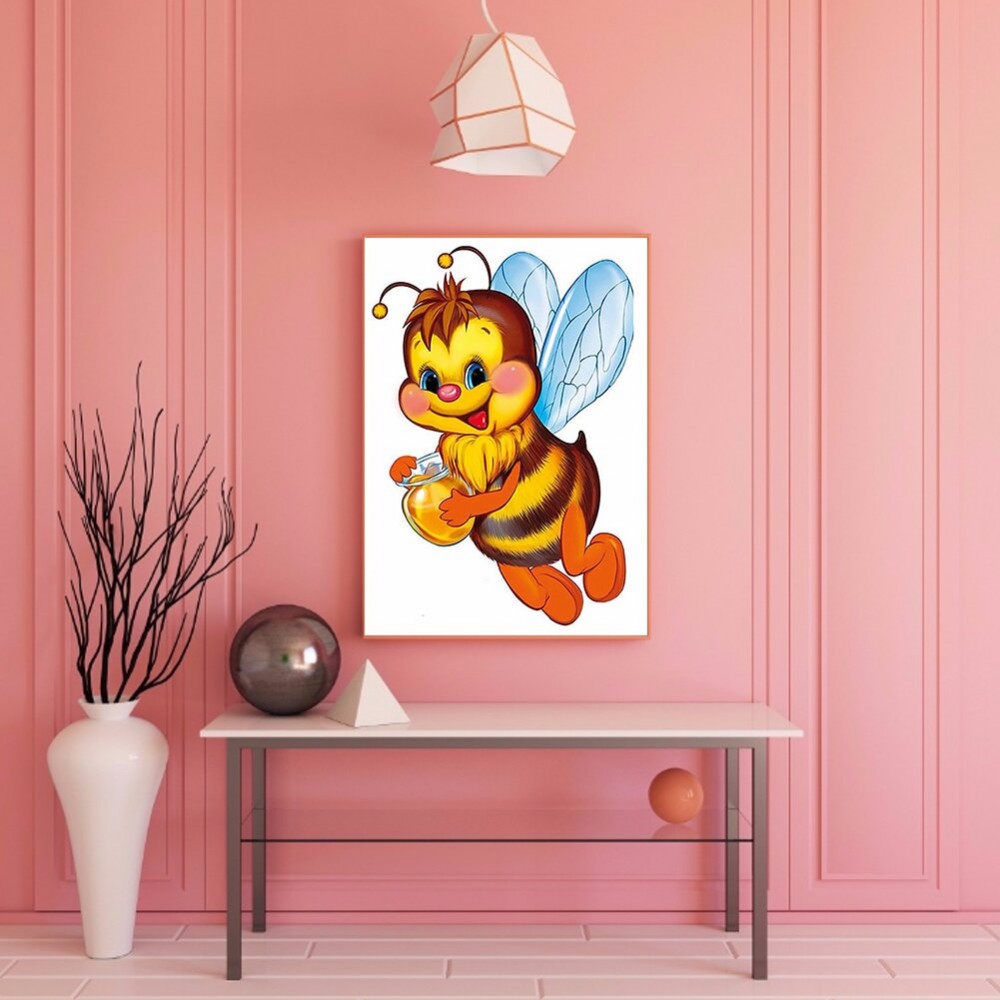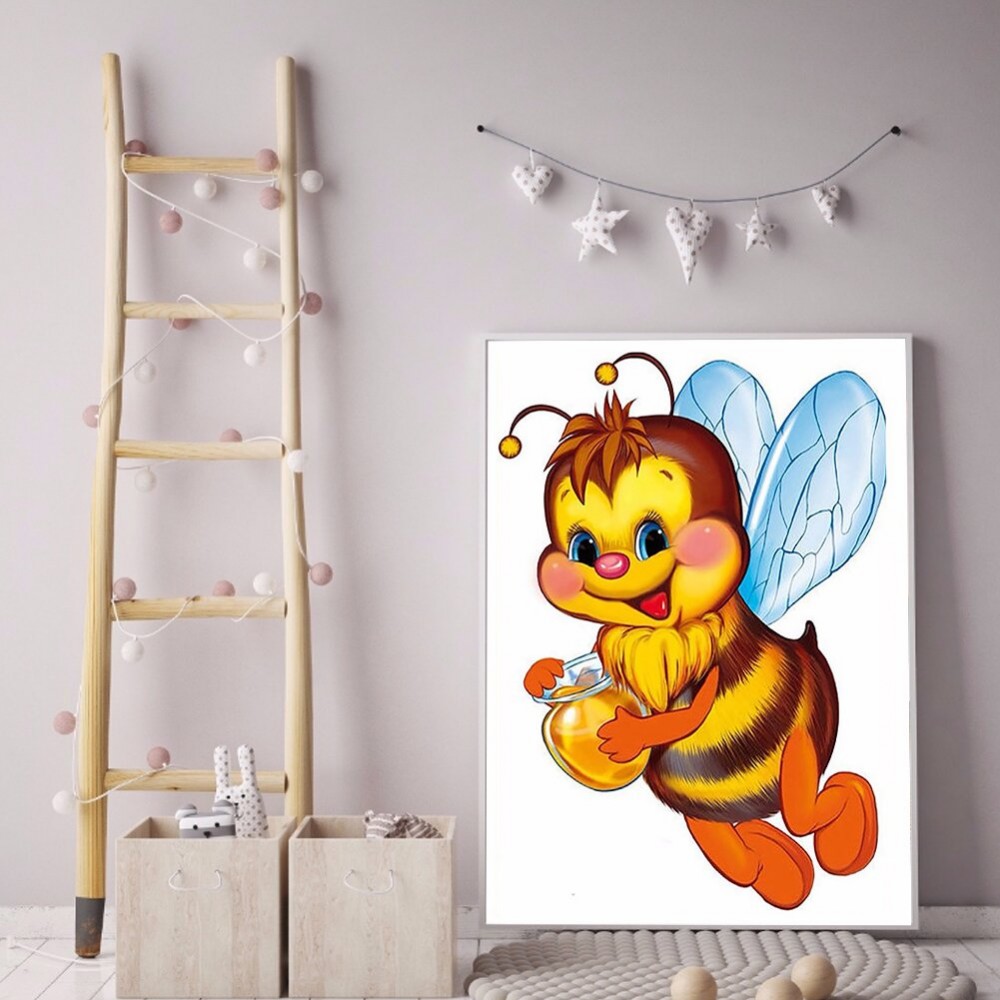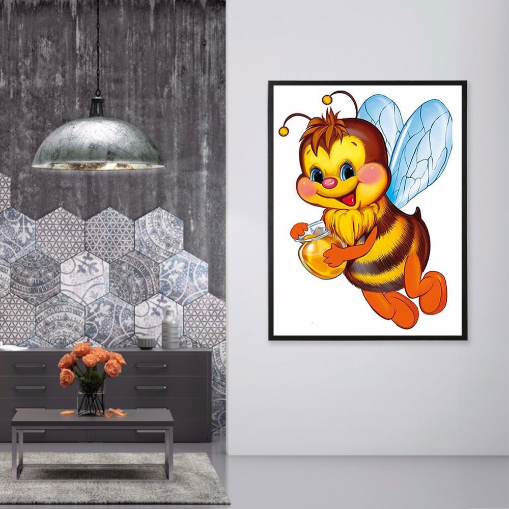 18x22 inch 5D DIY Full Round Drill Diamond Painting Cartoon Flying Bee Mosaic Wall Art Picture of Rhinestone Kit Home Decoration