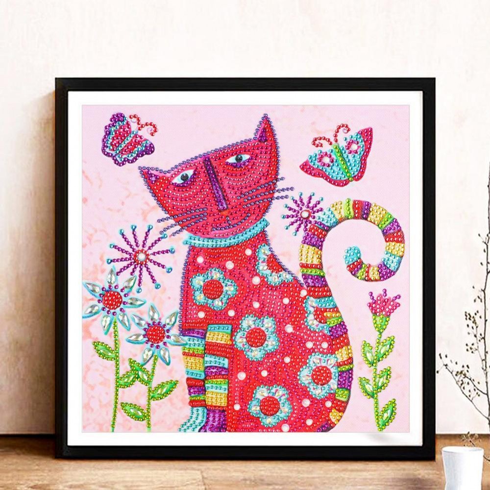 5D DIY Special Shaped Diamond Painting Kits Cat Cross Stitch Mosaic Partial Drill Rhinestone Embroidery Wall Art Picture Needlework Craft Home Decoration