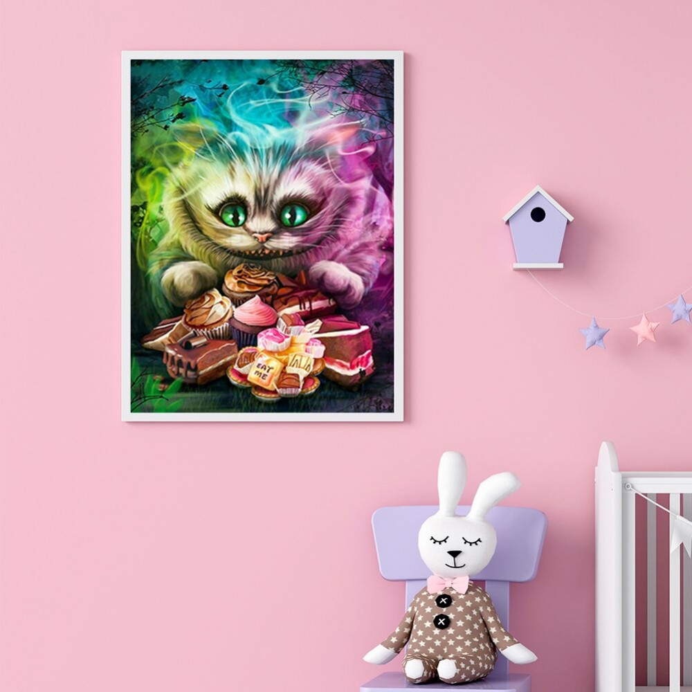 5D DIY Full Round Drill Diamond Painting Cat and Snack Mosaic Kit Rhinestone Drawing Picture Home Decoration Art Craft
