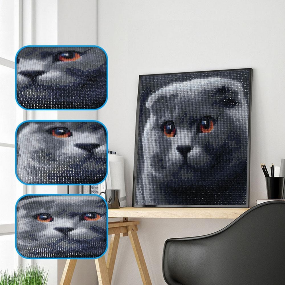 5D DIY Full Drill Square Diamond Painting Grey Cat Cross Stitch Embroidery Rhinestones Mosaic Kits Home Wall Decor