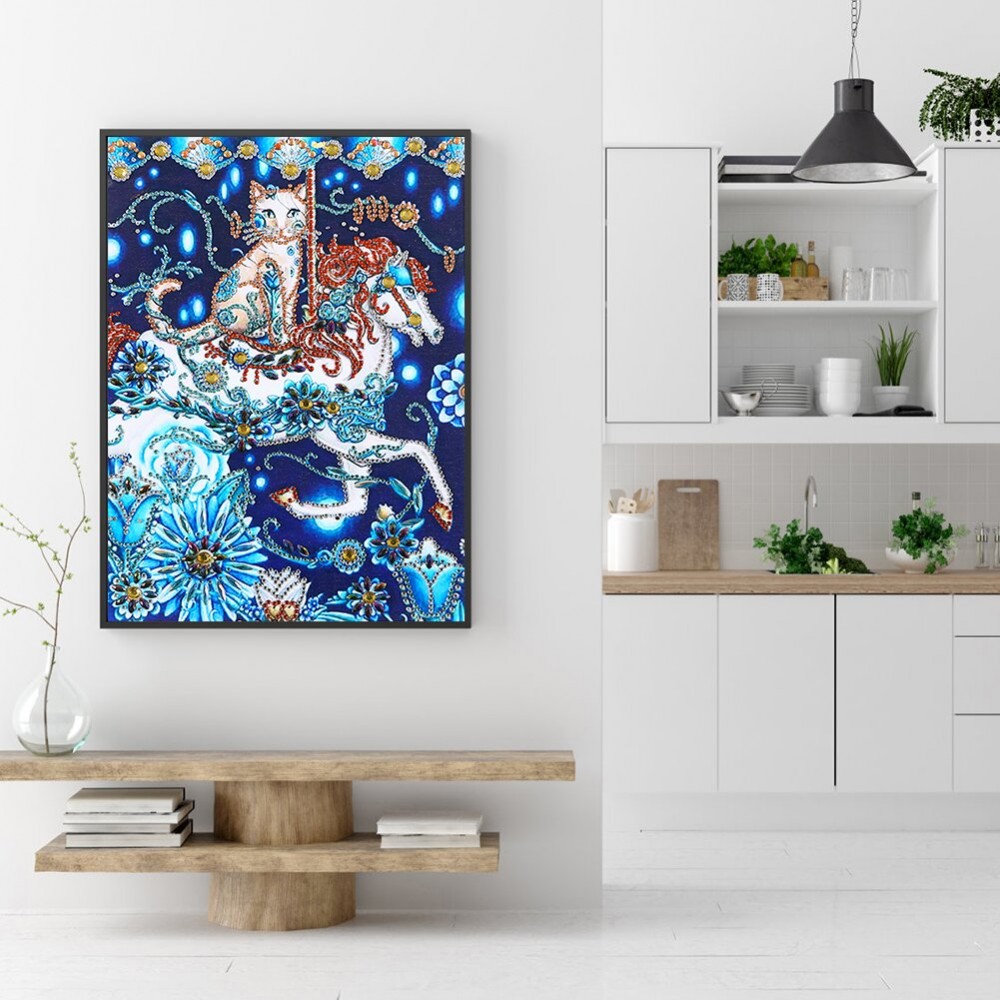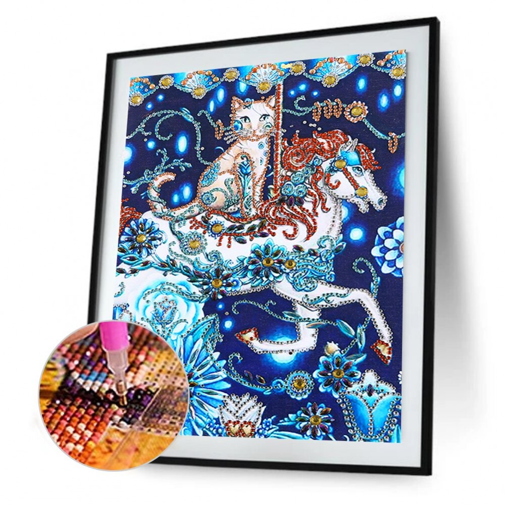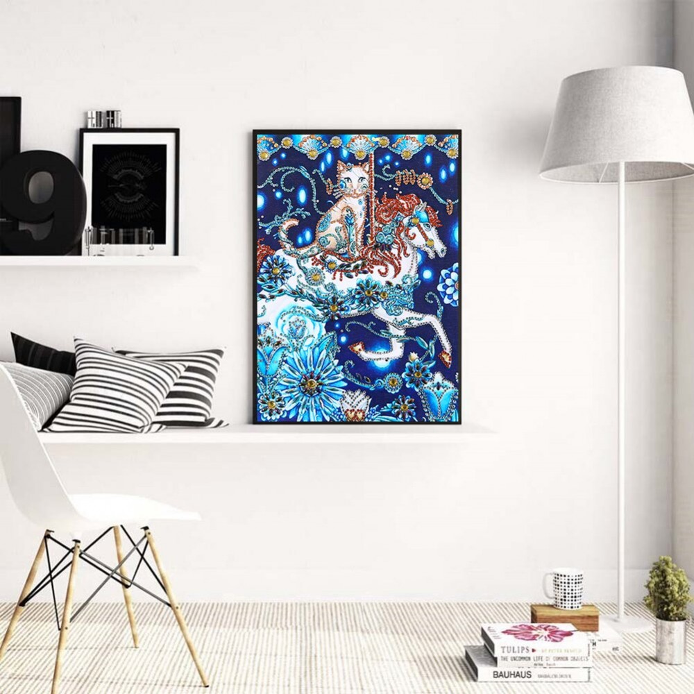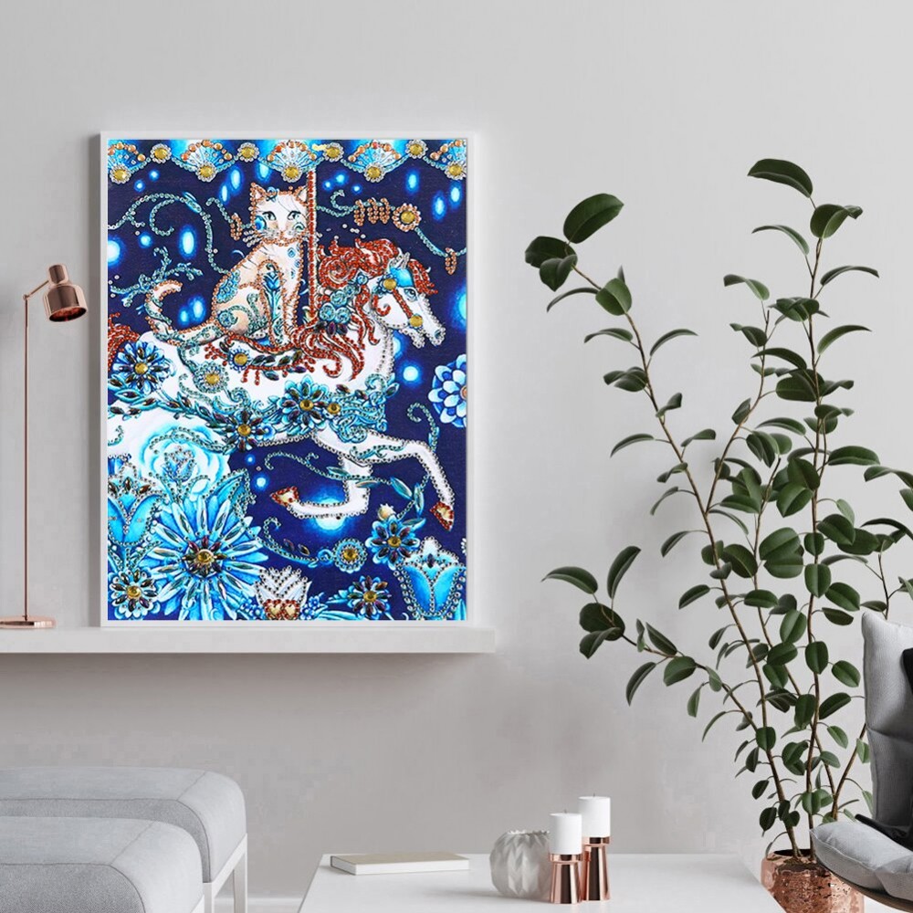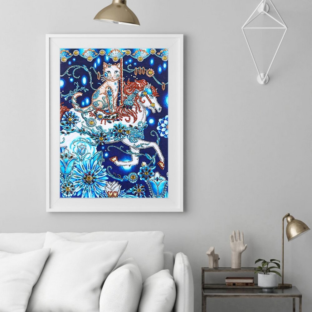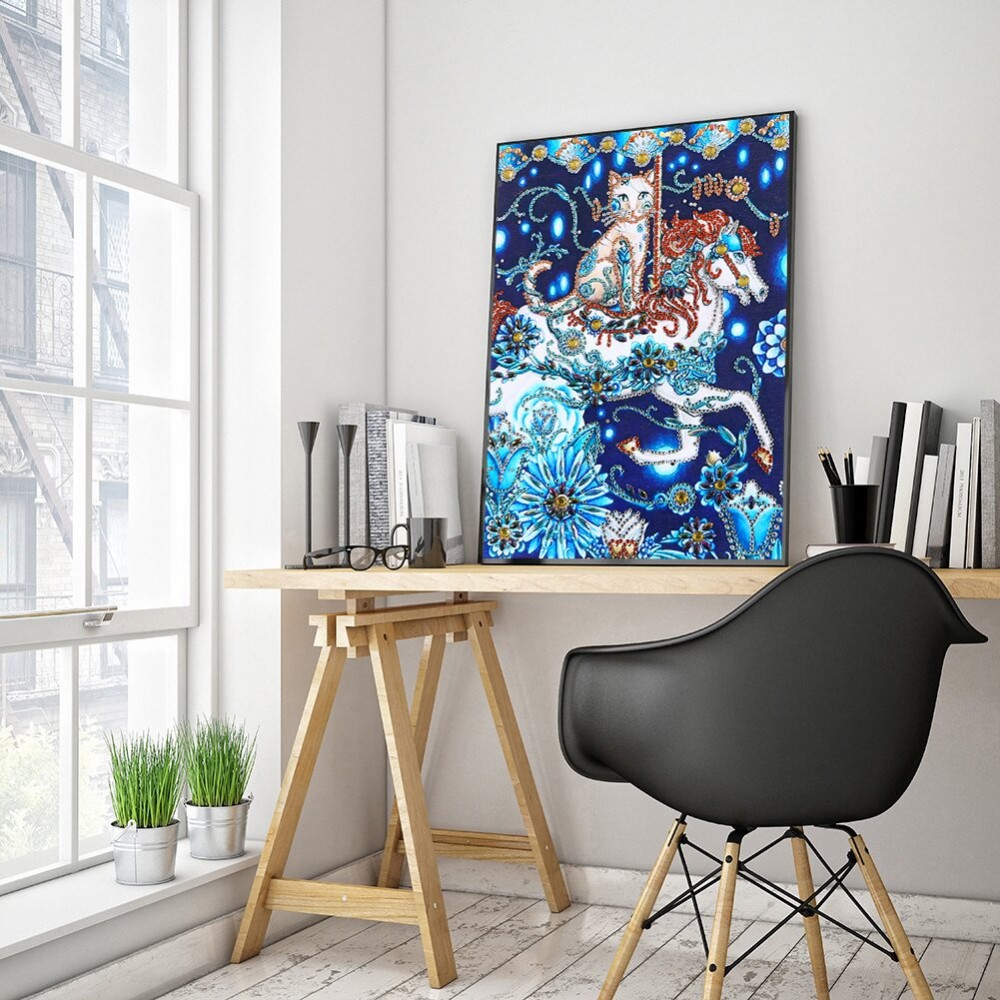 5D DIY Diamond Painting Cat Horse Partial Special Drill Mosaic Wall Art Picture of Rhinestone Home Decoration