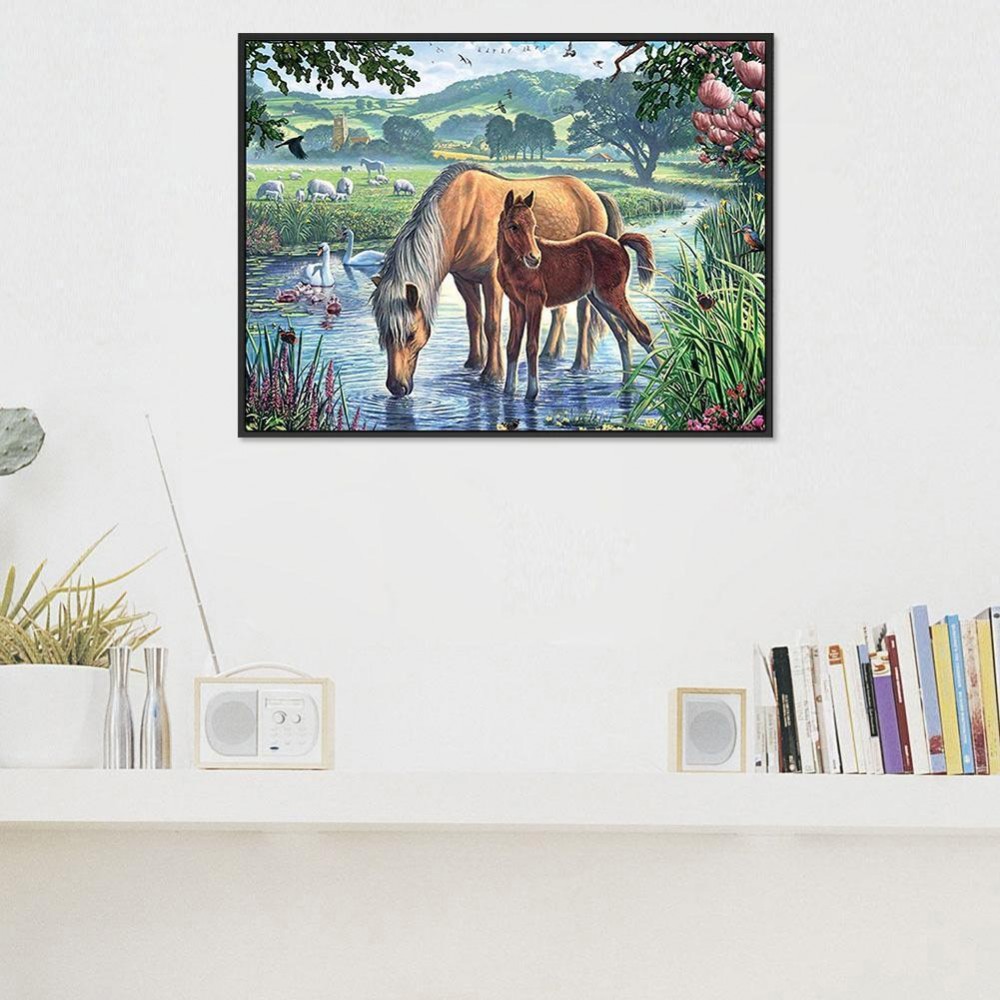 5D DIY Full Drill Diamond Painting Drinking Horse Cross Stitch Embroidery Rhinestones Mosaic Kits Home Wall Decor