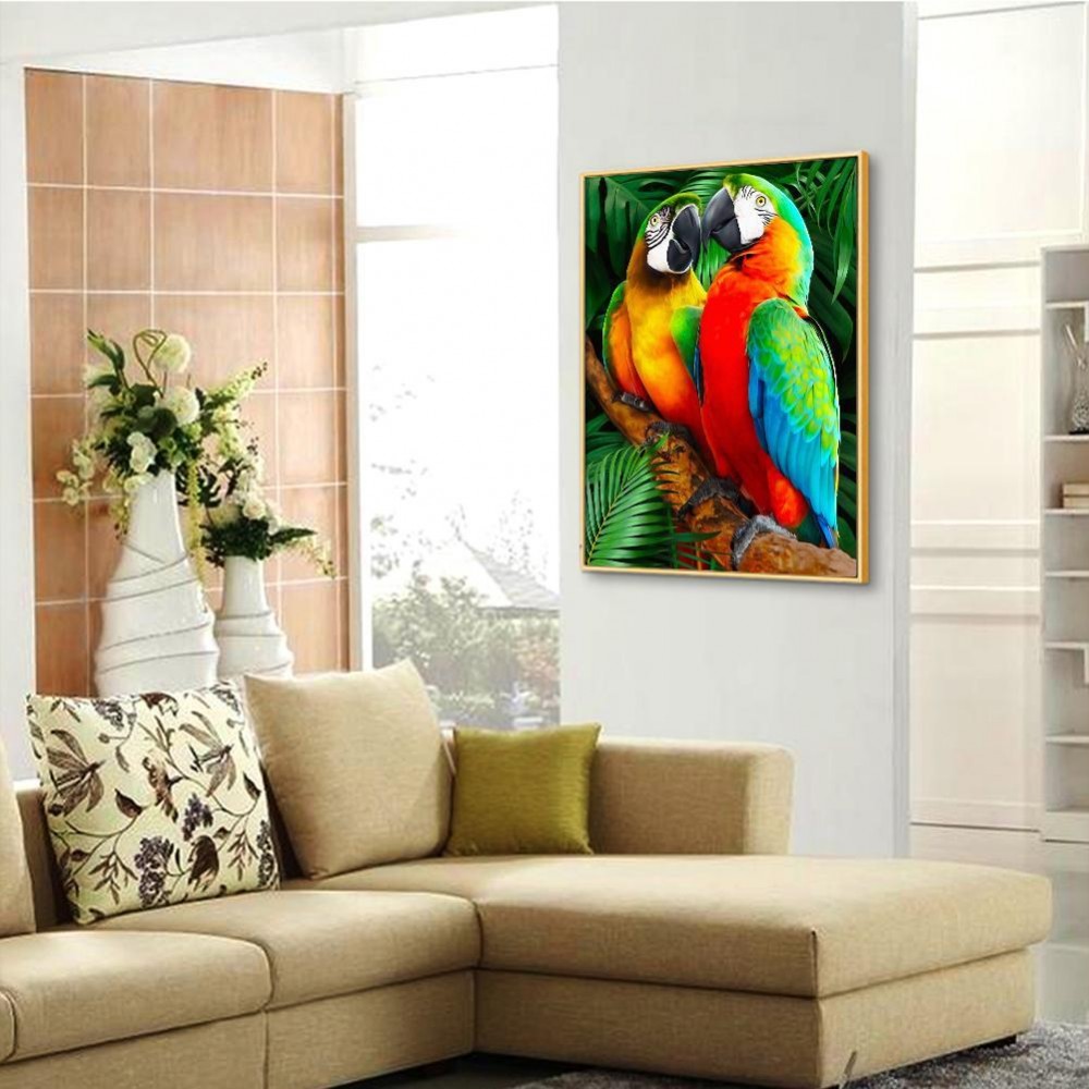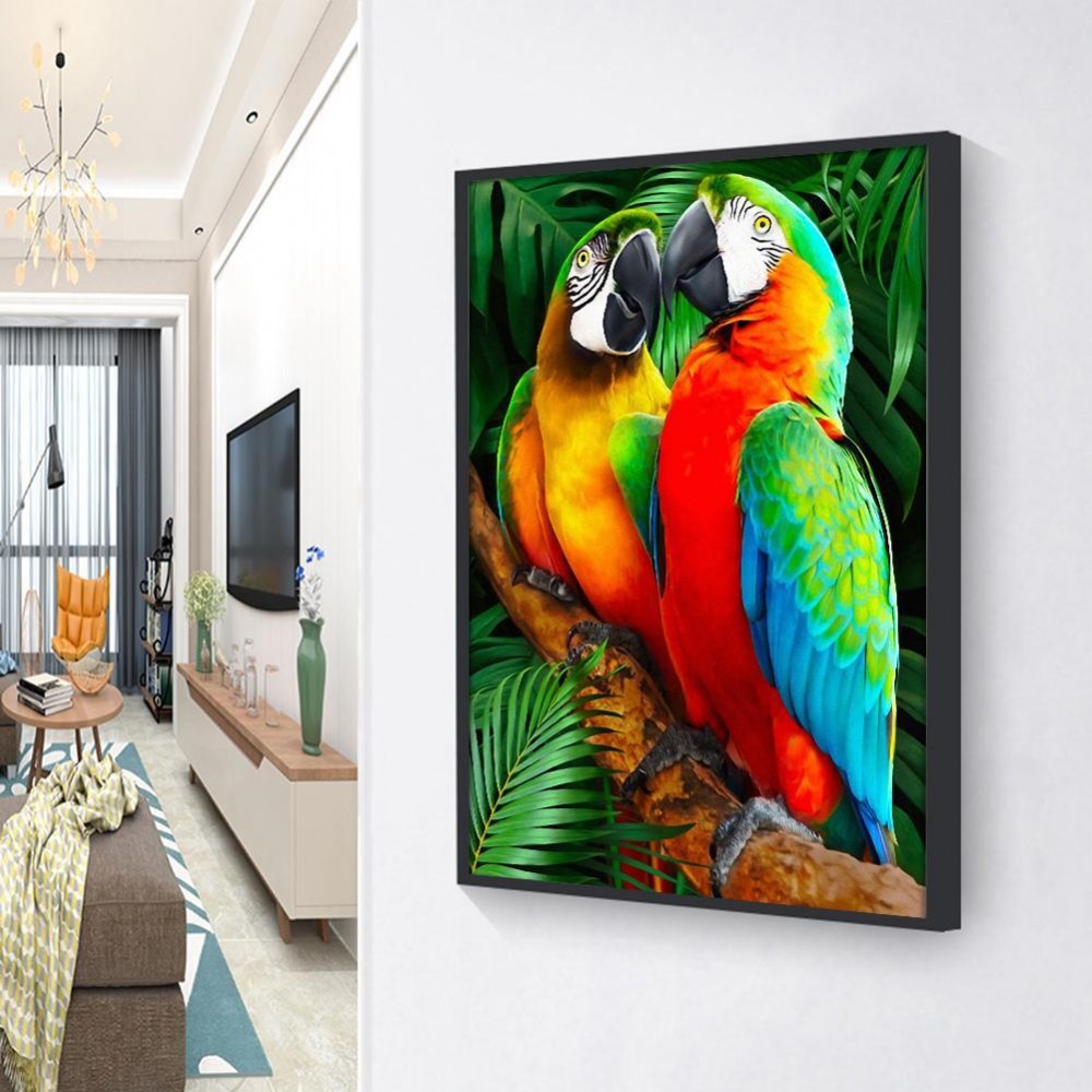 5D DIY Full Drill Round Diamond Painting Two Parrots Cross Stitch Embroidery Mosaic Kit Home Decor Needlework