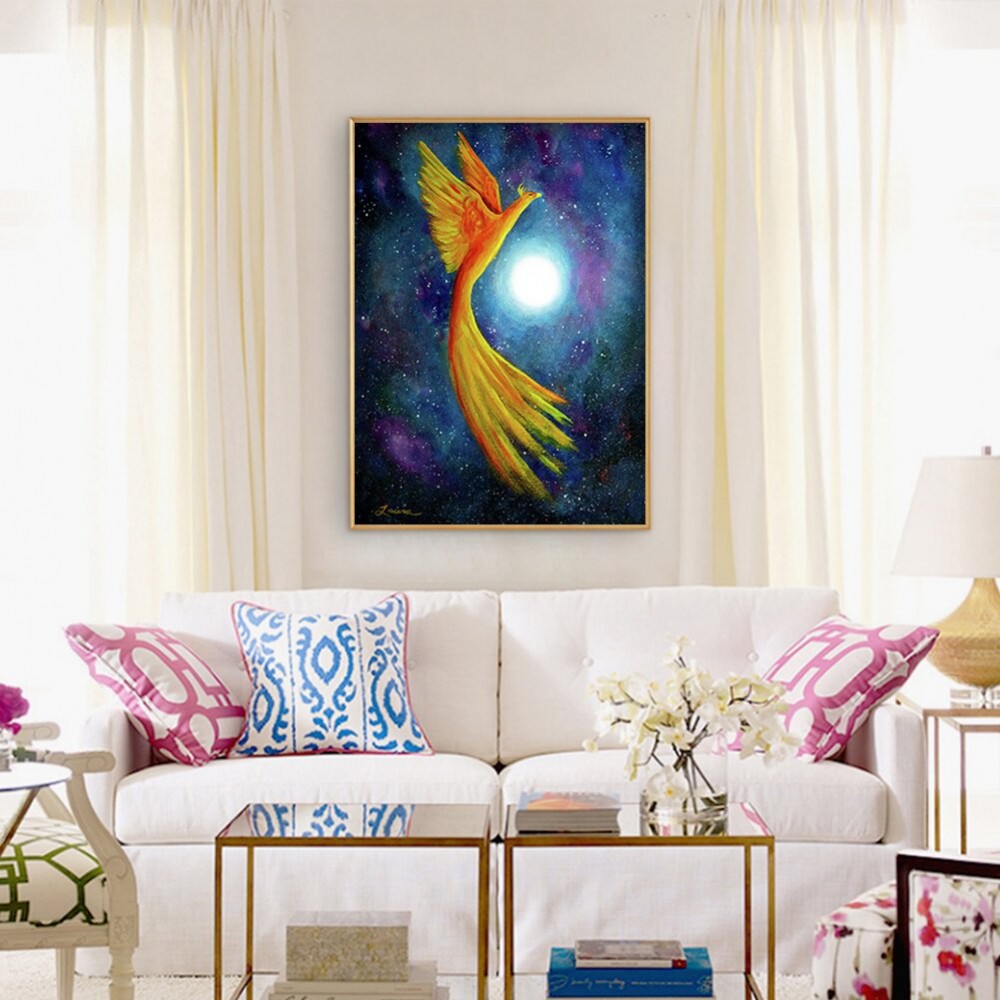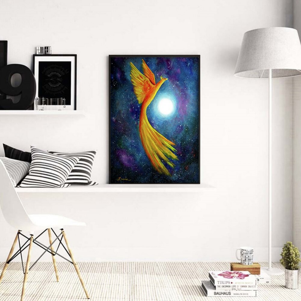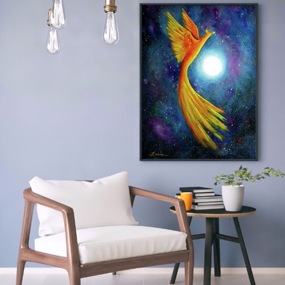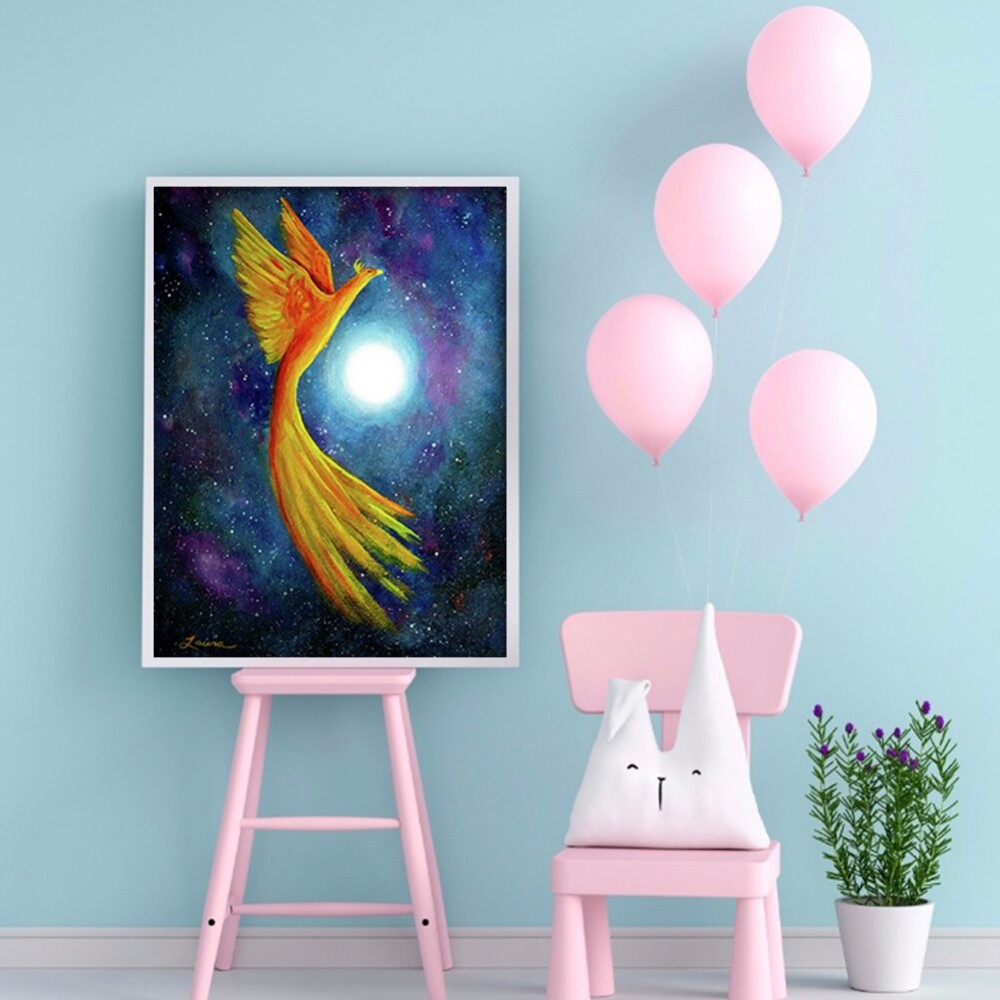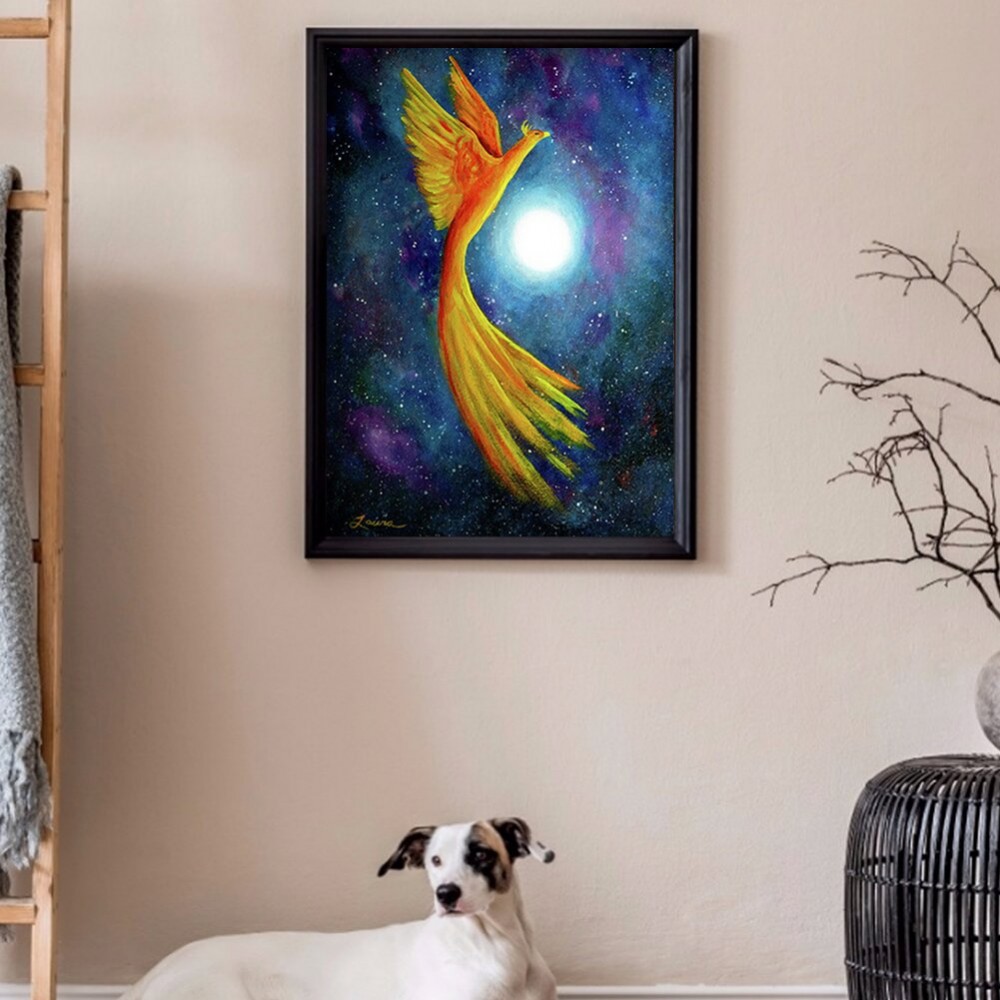 5D DIY Full Round Drill Diamond Painting Phoenix Under Moon Resin Rhinestone Mosaic Wall Art Picture Kit Home Decoration