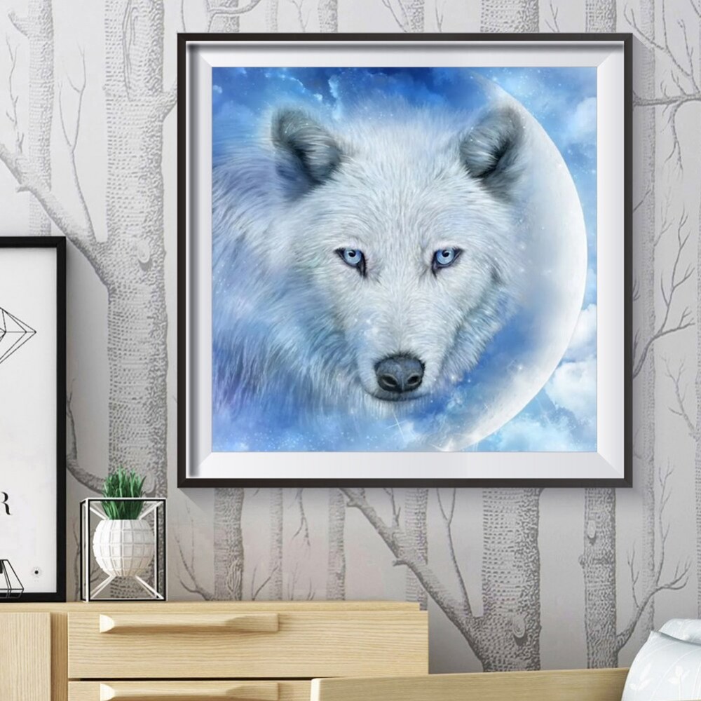 5D Full Round Drill Mosaic Craft Picture DIY Snow Wolf Diamond Painting Rhinestone Poster Home Wall Decor Gift