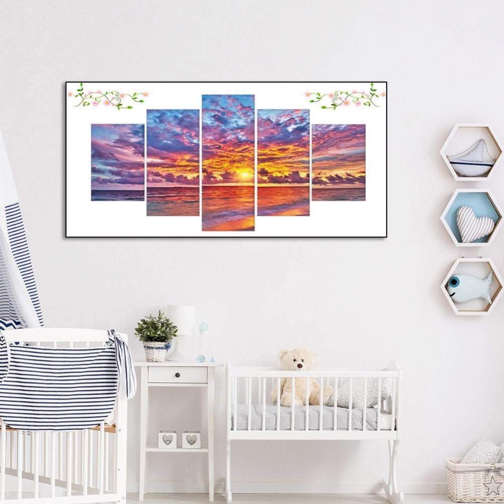 Lanscape 5D DIY Full Round Drill Rhinestones 5 Pieces Diamond Painting Embroidery Kits Needlework Set Cross Stitch Mosaic Art Craft Home Decor