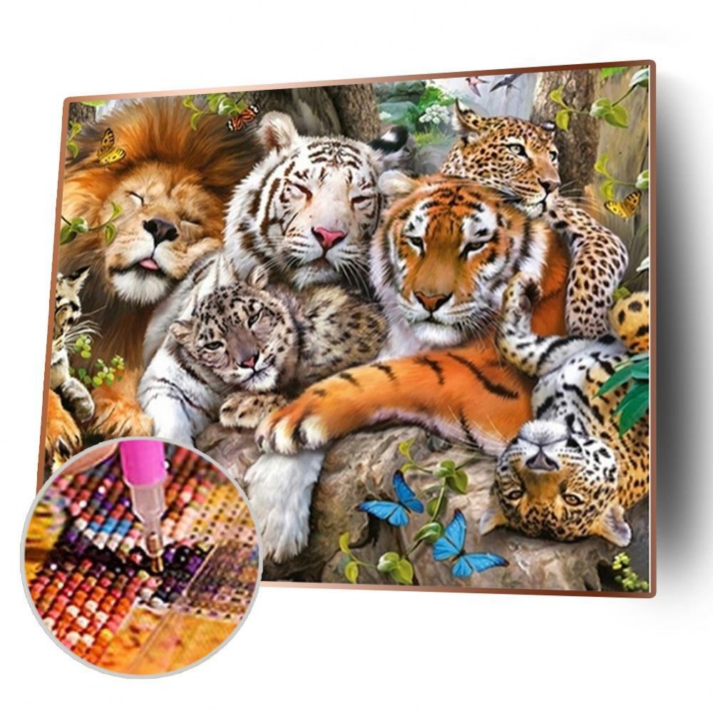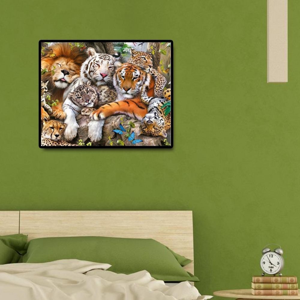5D DIY Full Round Drill Diamond Painting Tiger Embroidery Cross Stitch Mosaic Kit Rhinestone Picture Canvas Wall Art Modern Living Room Home Decoration