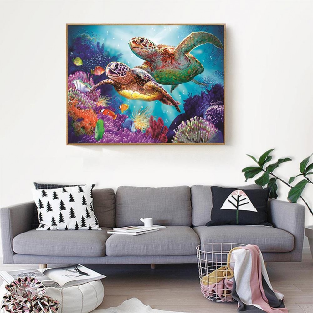 Diamond Painting DIY 5D Turtles Sea Embroidery Round Rhinestones Cross Stitch Mosaic Kits Home Wall Decor Gifts 40 X 30cm
