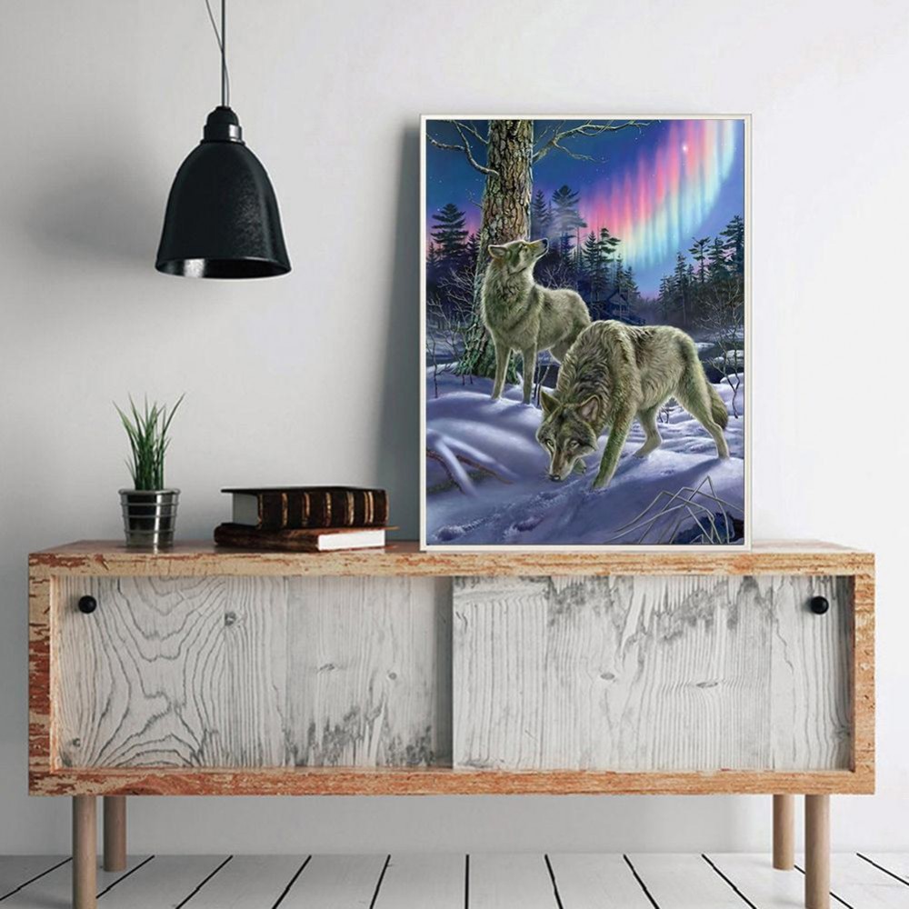 5D DIY Diamond Painting Wolf Full Square Drill Cross Stitch Mosaic Embroidery Rhinestone Canvas Wall Art Craft Needlework Gift Home Decoration