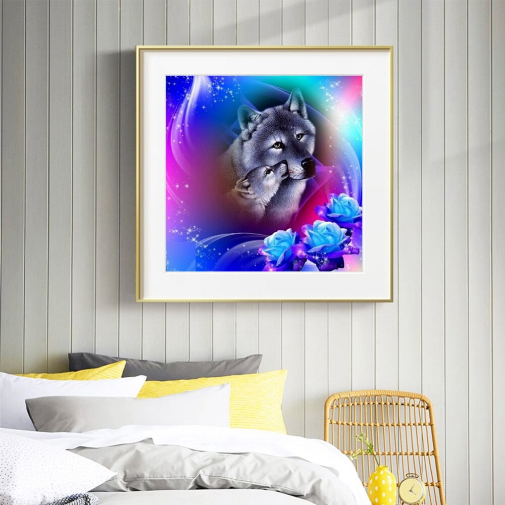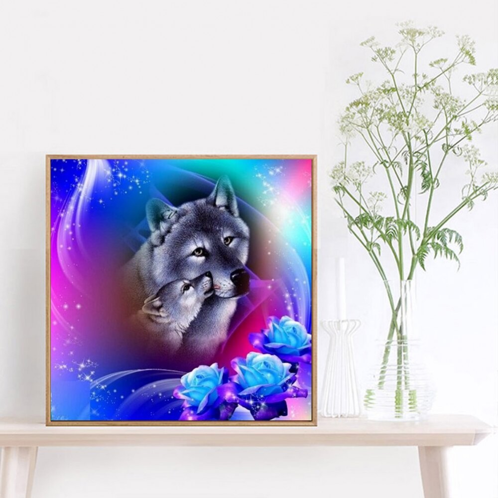 Wolf Mother and Son Full Round Drill Diamond Painting 5D DIY Animals Rhinestone Picture Mosaic Kits Wall Art Handmade Craft Gift Home Decor