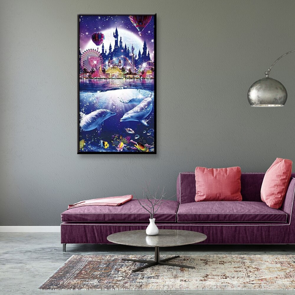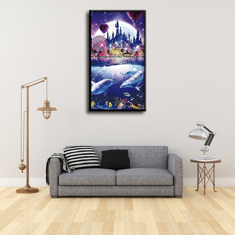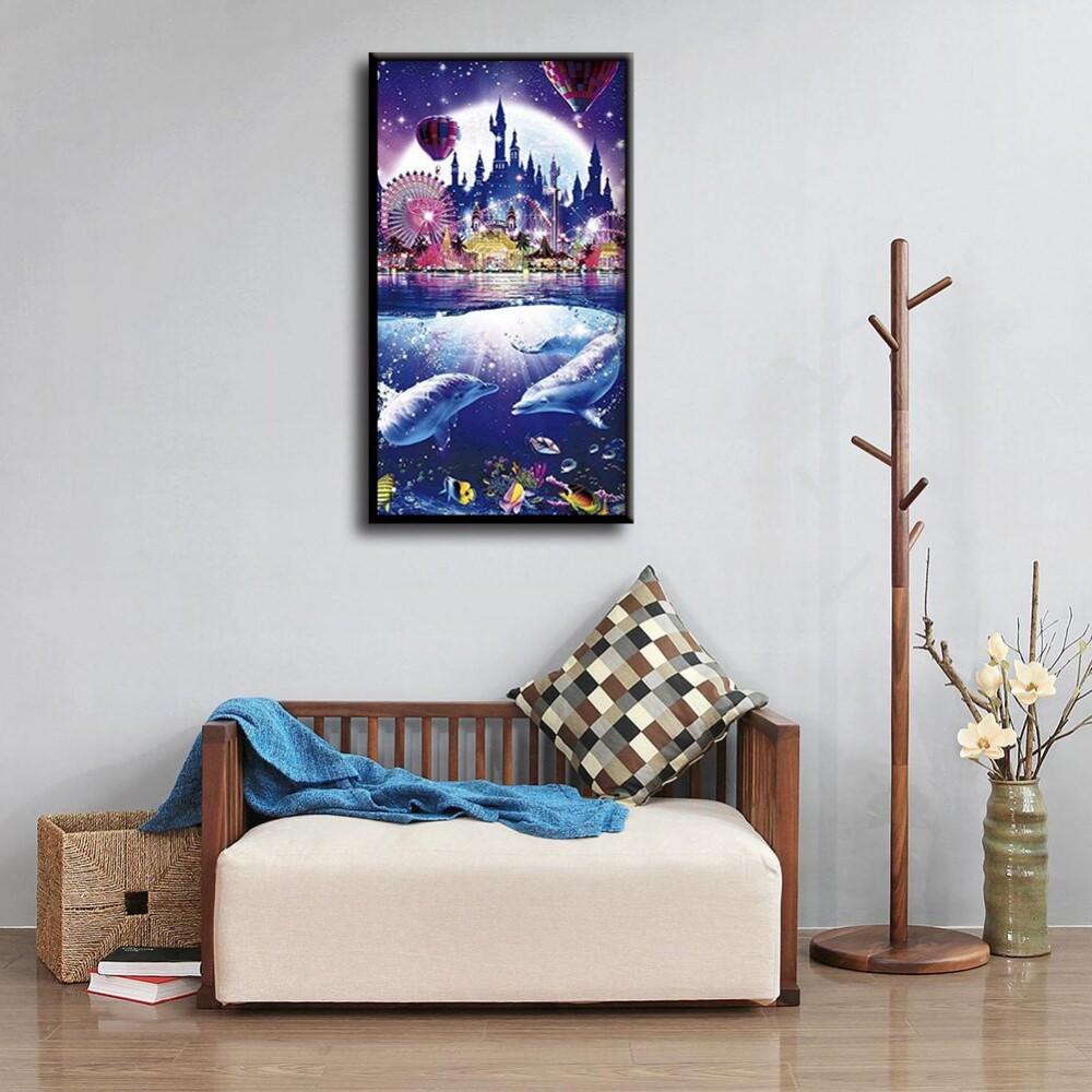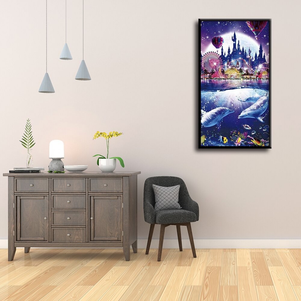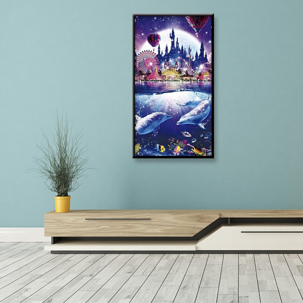Color Marine Dolphin Park Rhinestone Resin Painting Kit Picture of Room Decoration Diamond Drawing DIY 5D Mosaic Full Drill Round Diamond Wedding Gifts