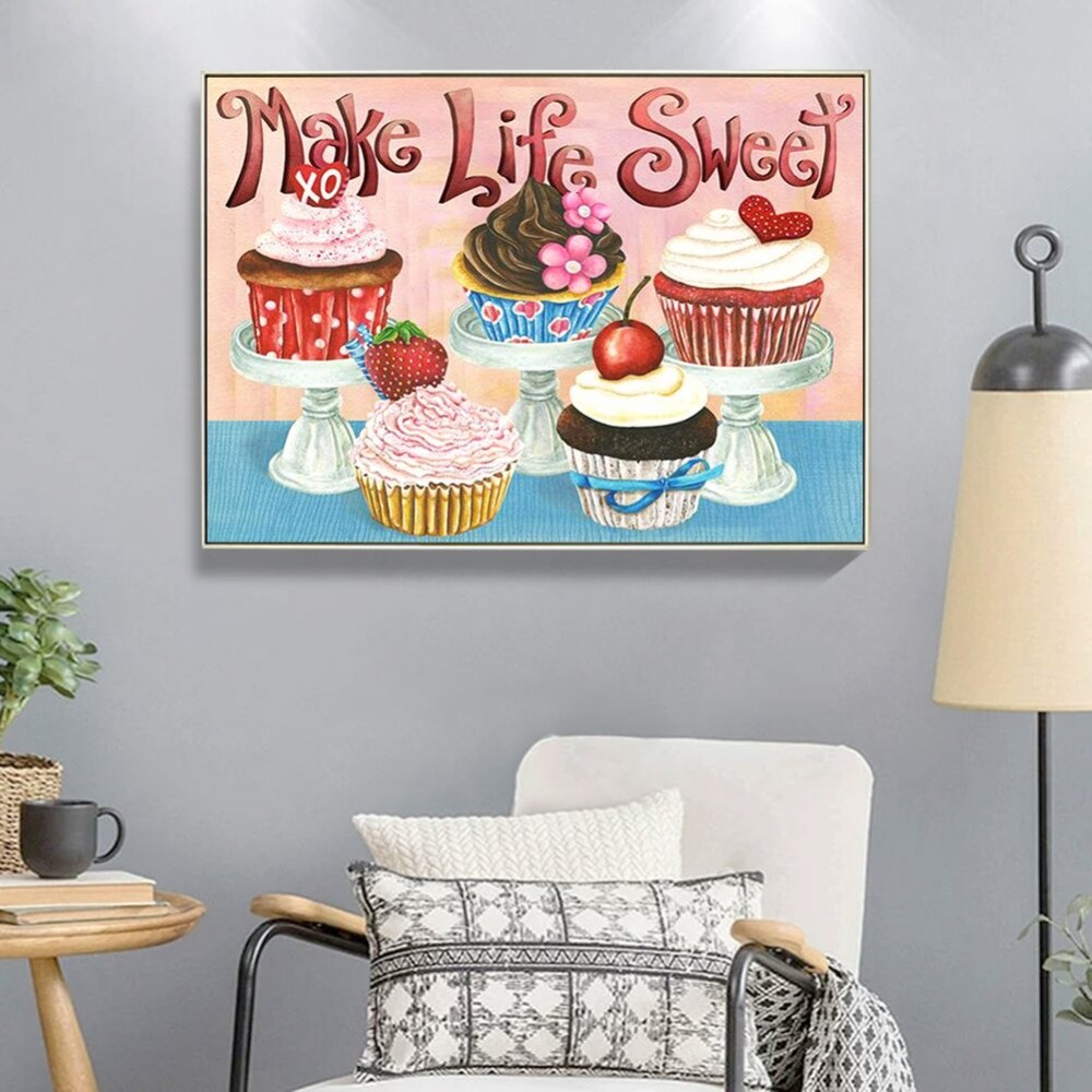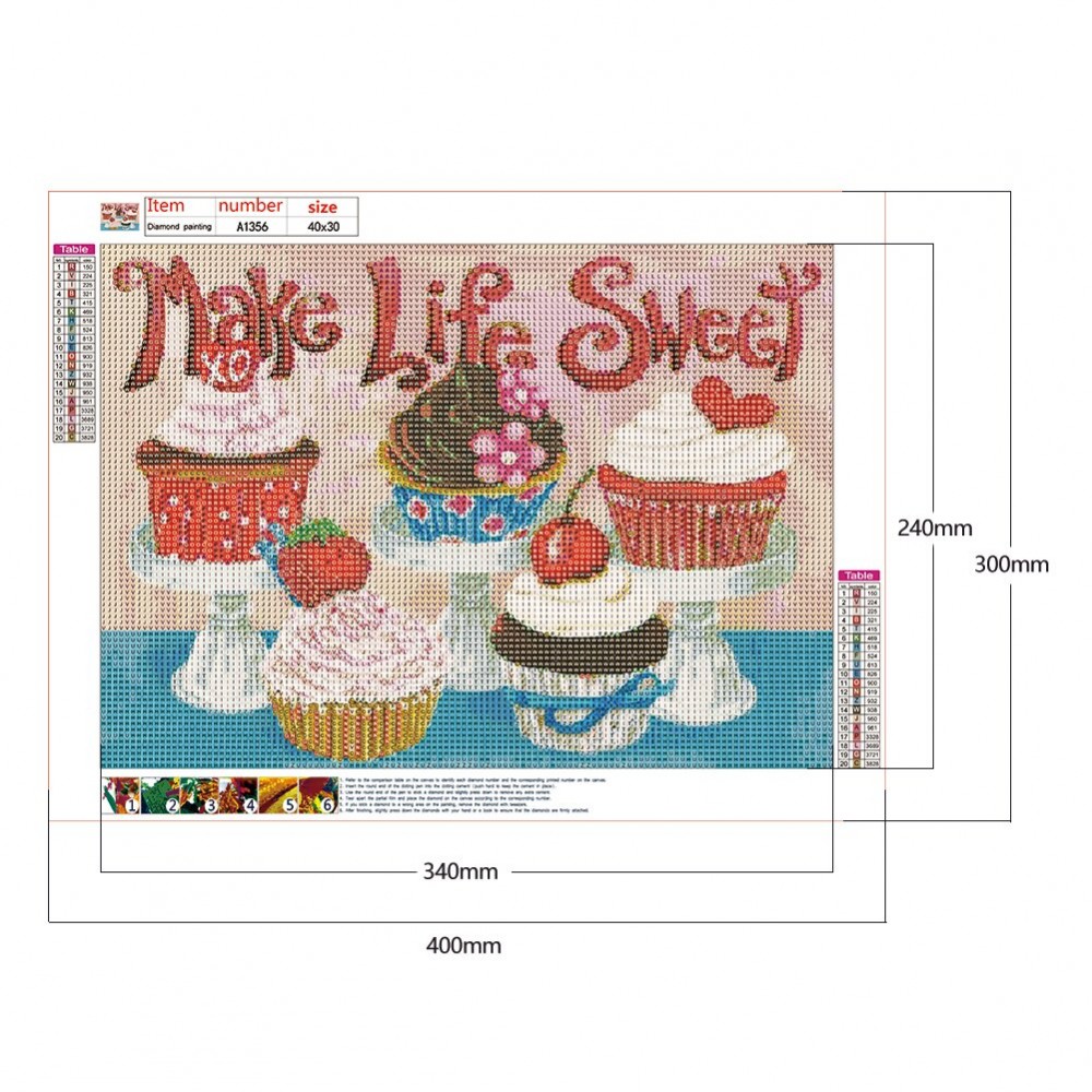 5D DIY Full Round Drill Diamond Painting Desk Cup Cakes Resin Rhinestone Mosaic Wall Art Picture Kit Home Decoration
