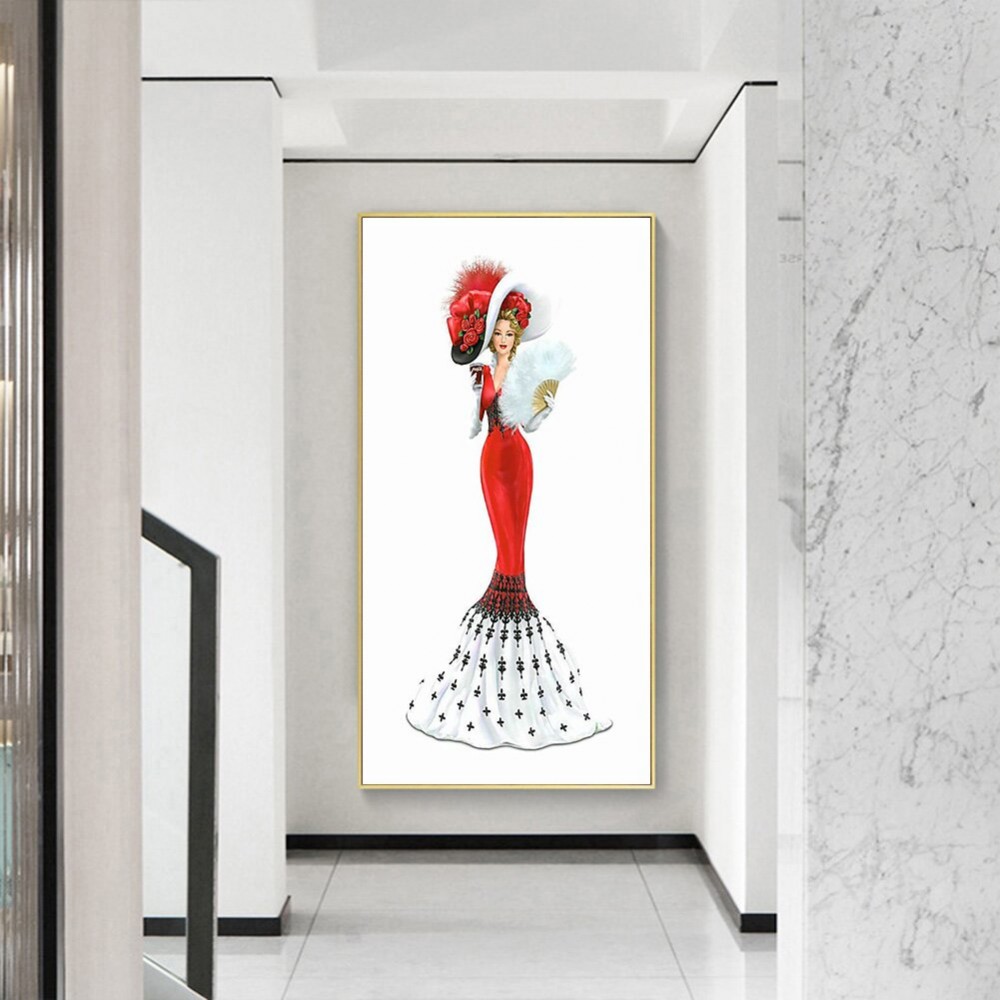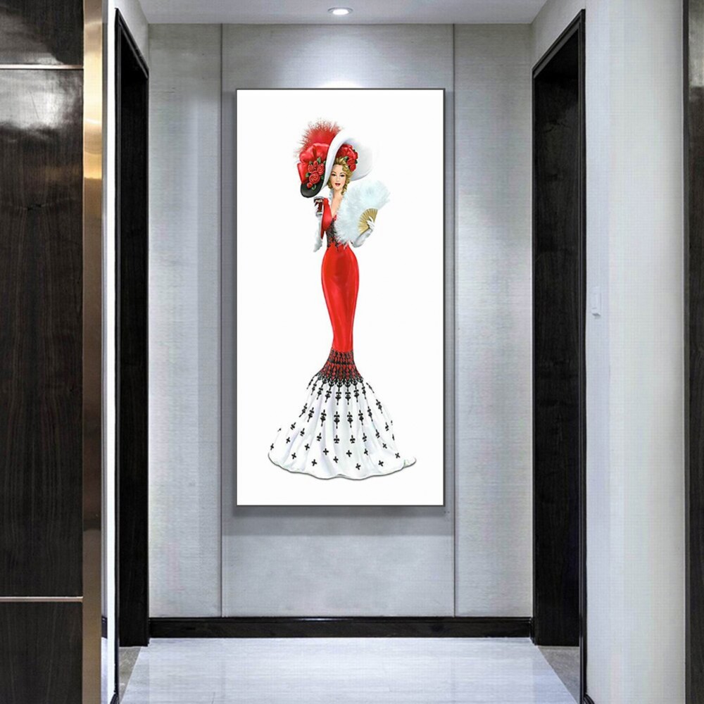 5D DIY Full Round Diamond Painting Dress Lady Rhinestone Customized Handwork Wall Picture Kit Home Bedroom Decor