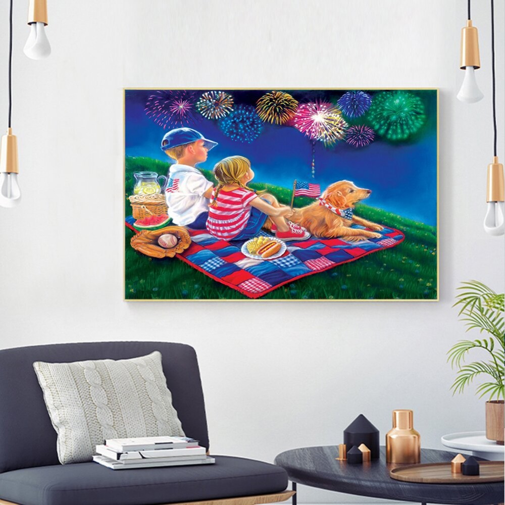 Firework Picnic -Full Round Diamond Painting