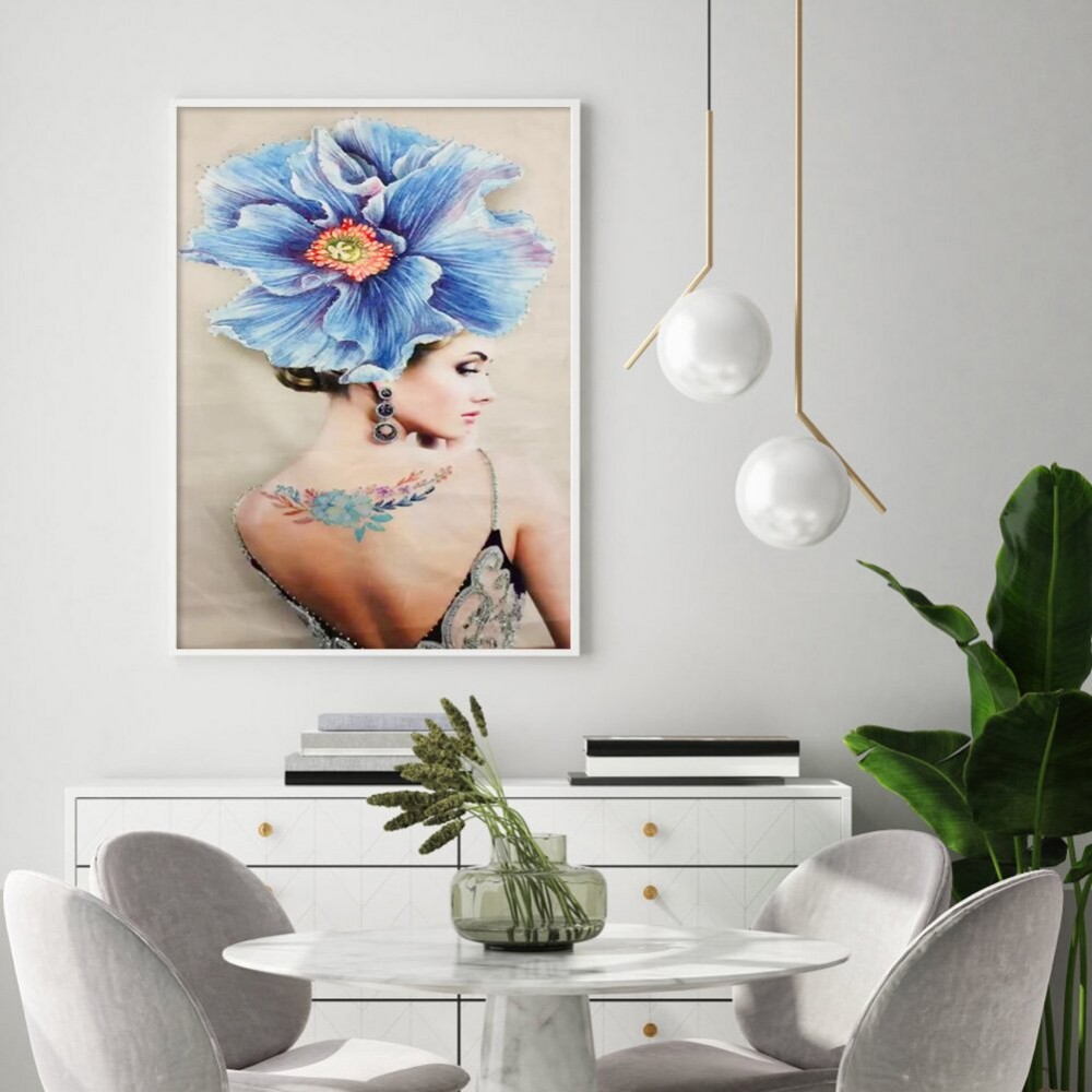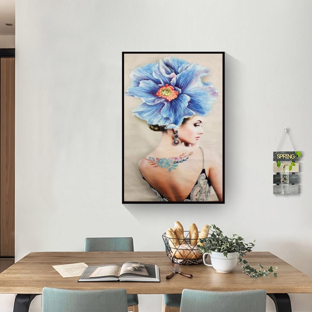 5D DIY Diamond Painting Flower Lady Special Shaped Partial Drill Rhinestones Handwork Mosaic Wall Painting Craft Kits for Home Decor