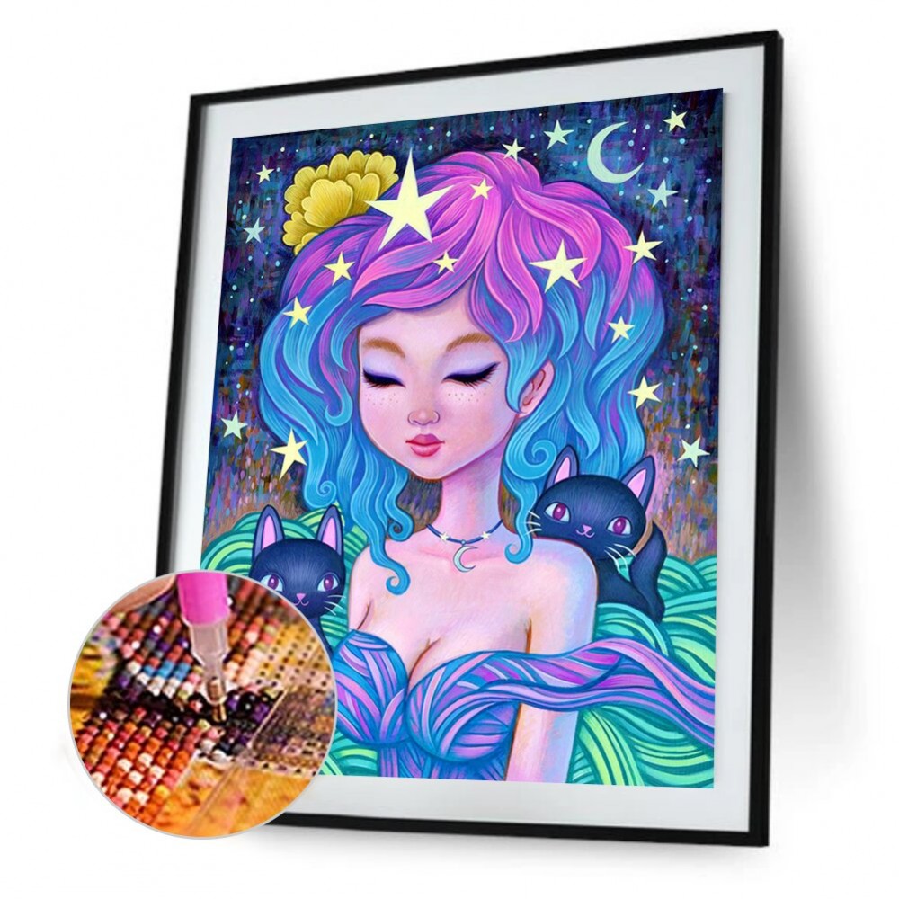 Illustration Girl 5D DIY Diamond Painting Kits Full Round Drill Wall Picture Handmade Rhinestones Mosaic Craft Gift Home Decor