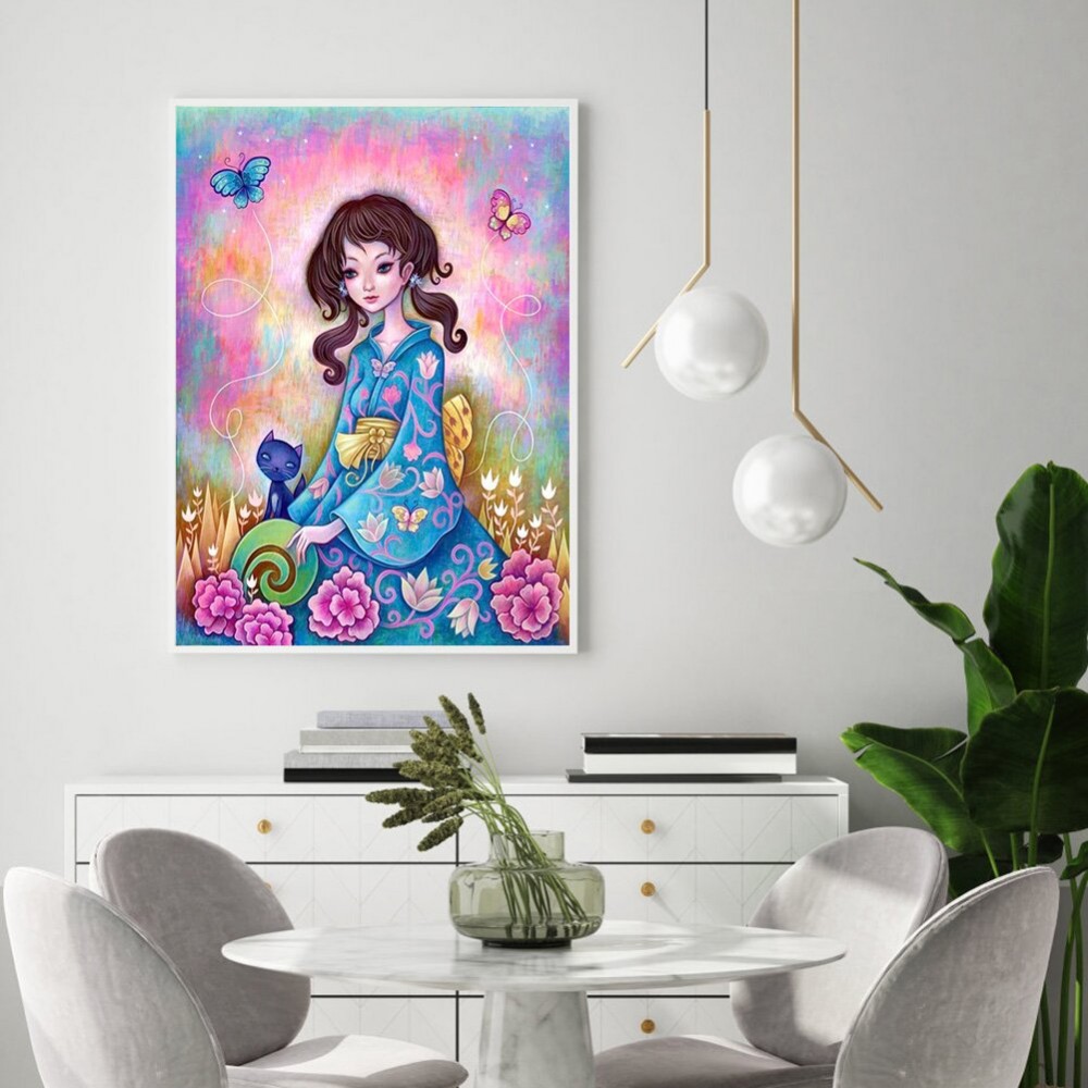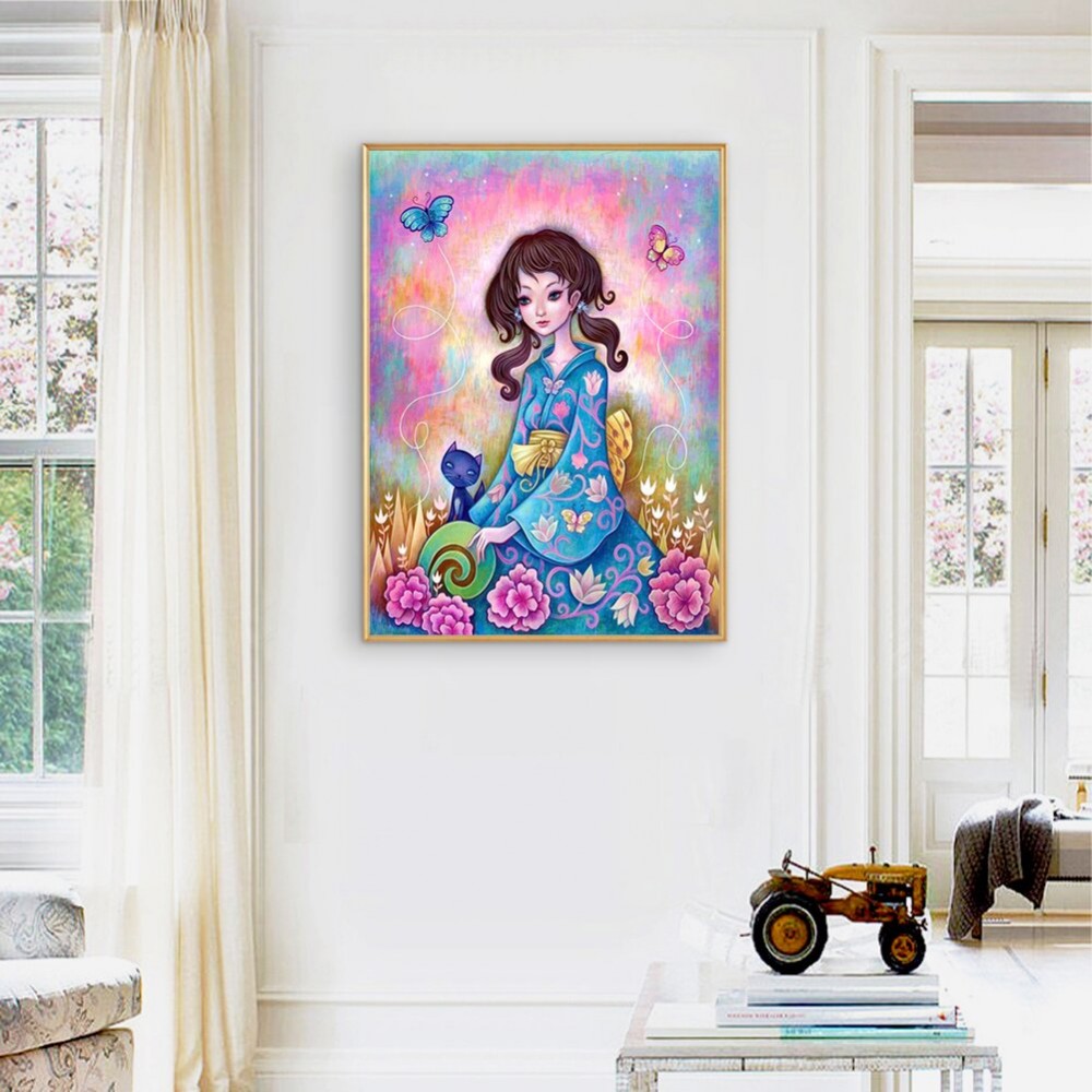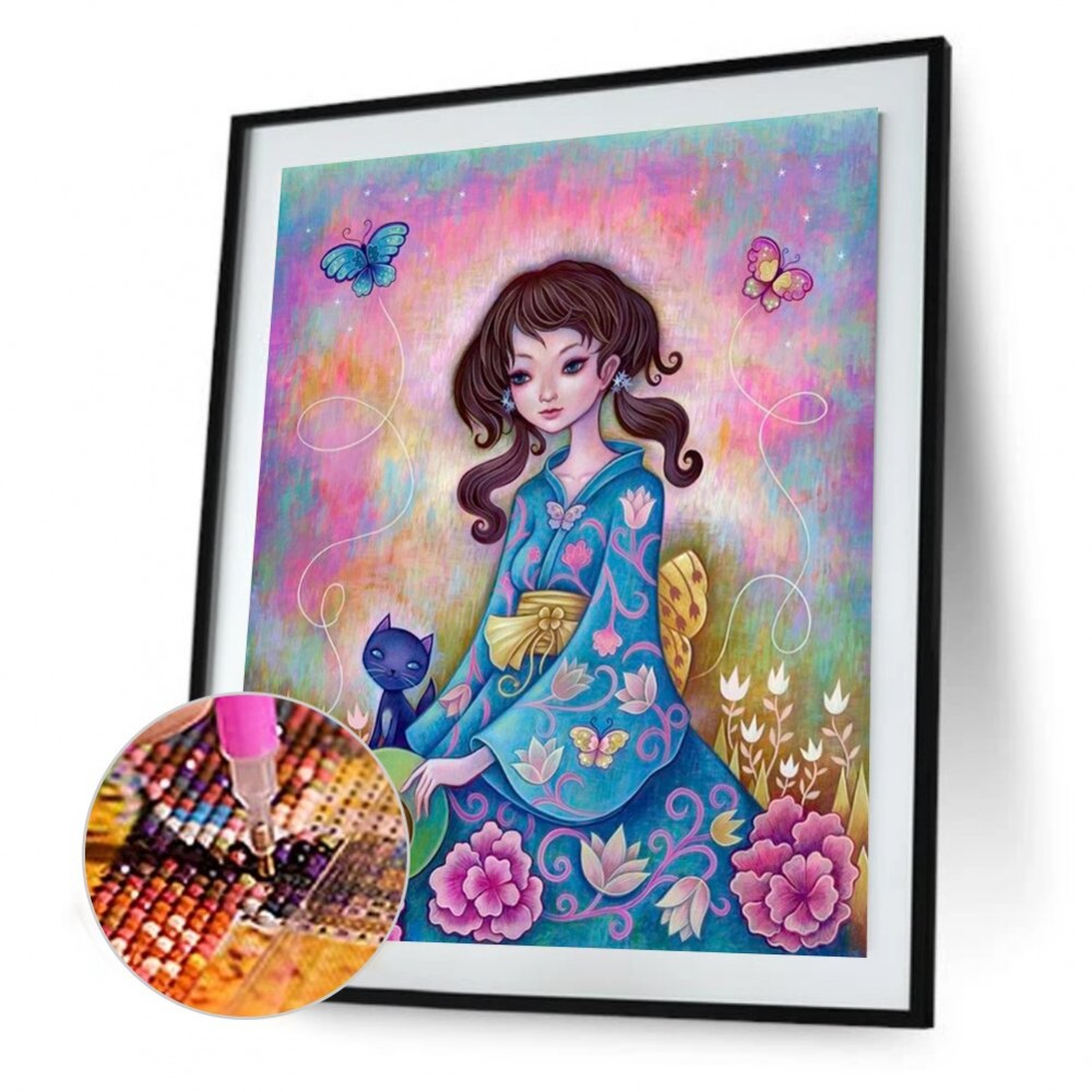 Illustration Girl 5D DIY Diamond Painting Kits Full Round Drill Wall Picture Handmade Rhinestones Mosaic Craft Gift Home Decor