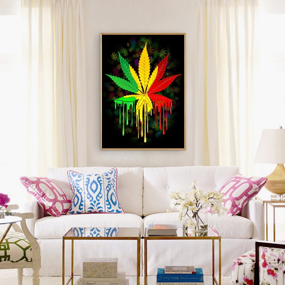 5D DIY Full Round Drill Diamond Painting Color Maple Leaf Mosaic Kit Rhinestone Drawing Picture Home Decoration Art Craft