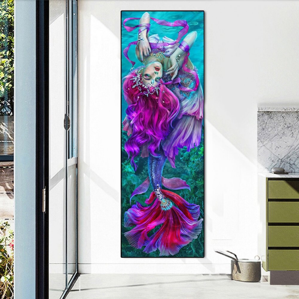5D DIY Full Drill Round Diamond Painting Fashion Mermaid Diamond Embroidery Mosaic Kit Home Decor for Bead Art Wall Gift