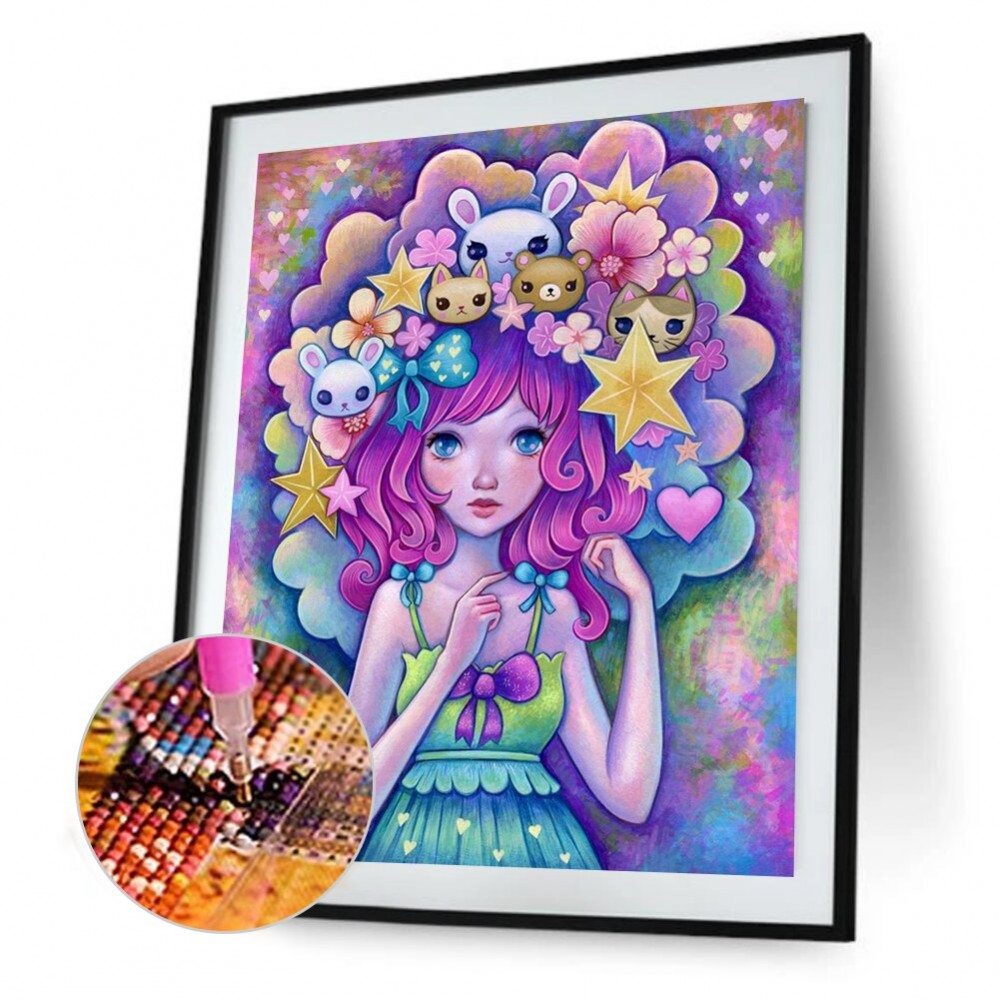 Cartoon Painted Girl Craft Picture 5D DIY Full Round Drill Diamond Painting Handmade Rhinestones Mosaic Wall Craft Kits Gift Home Decor