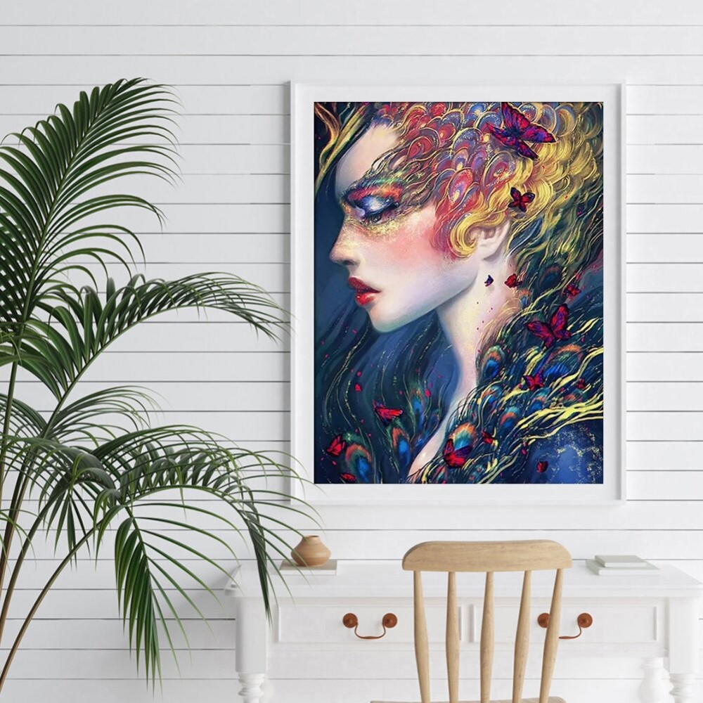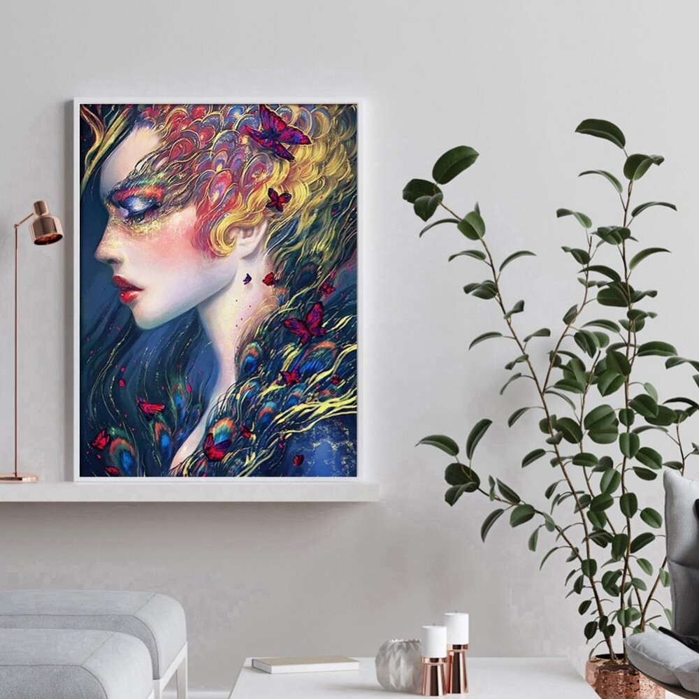 5D Full Round Drill Mosaic Craft Picture DIY Peafowl Women Diamond Painting Rhinestone Poster Home Wall Decor Gift
