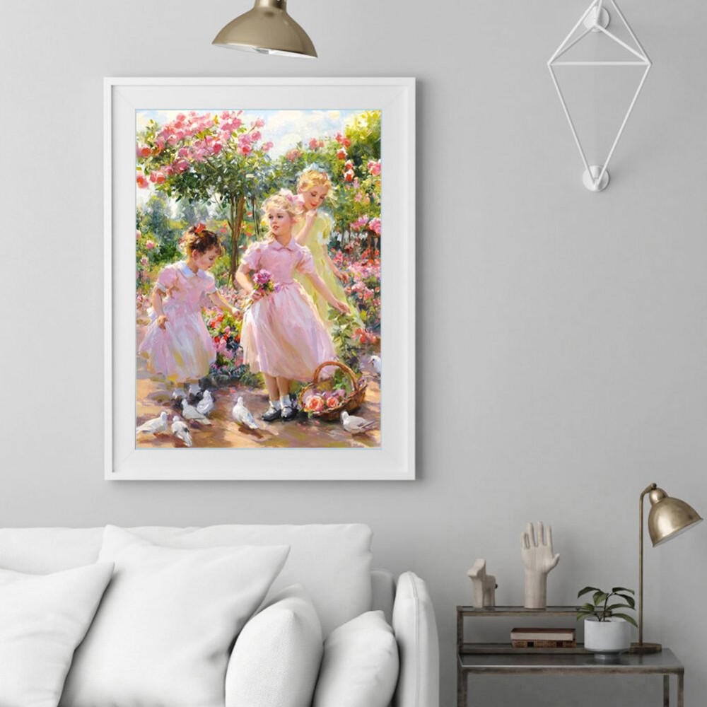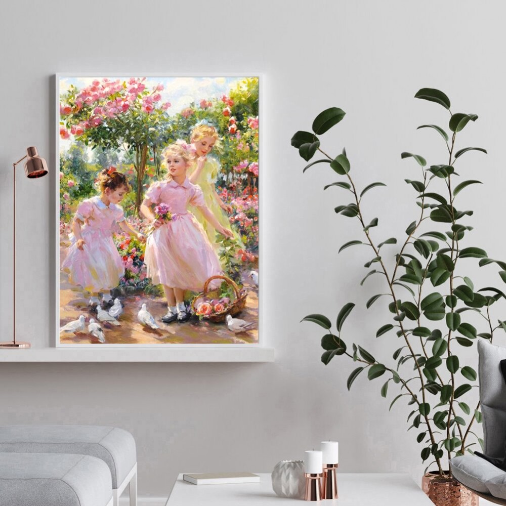 5D DIY Full Drill Round Diamond Painting Playing Girls Diamond Embroidery Mosaic Kit Home Decor for Bead Art Wall Gift