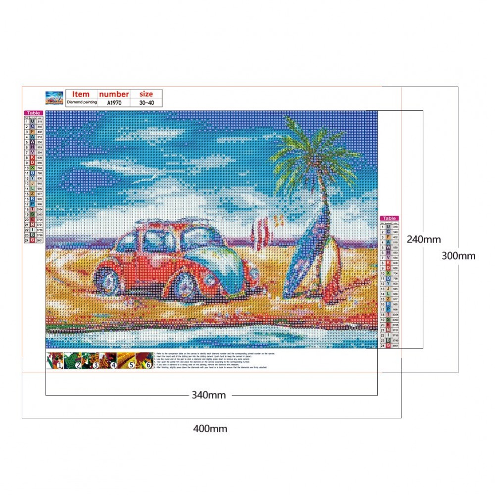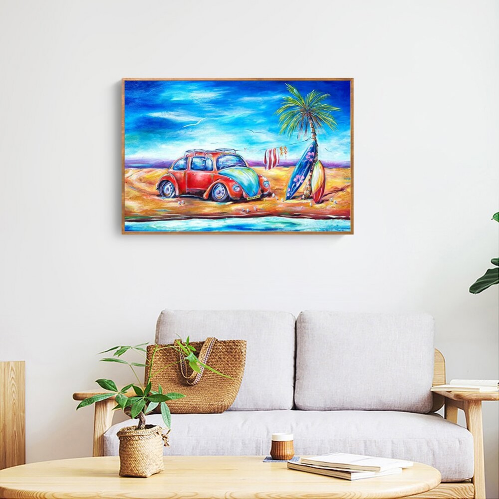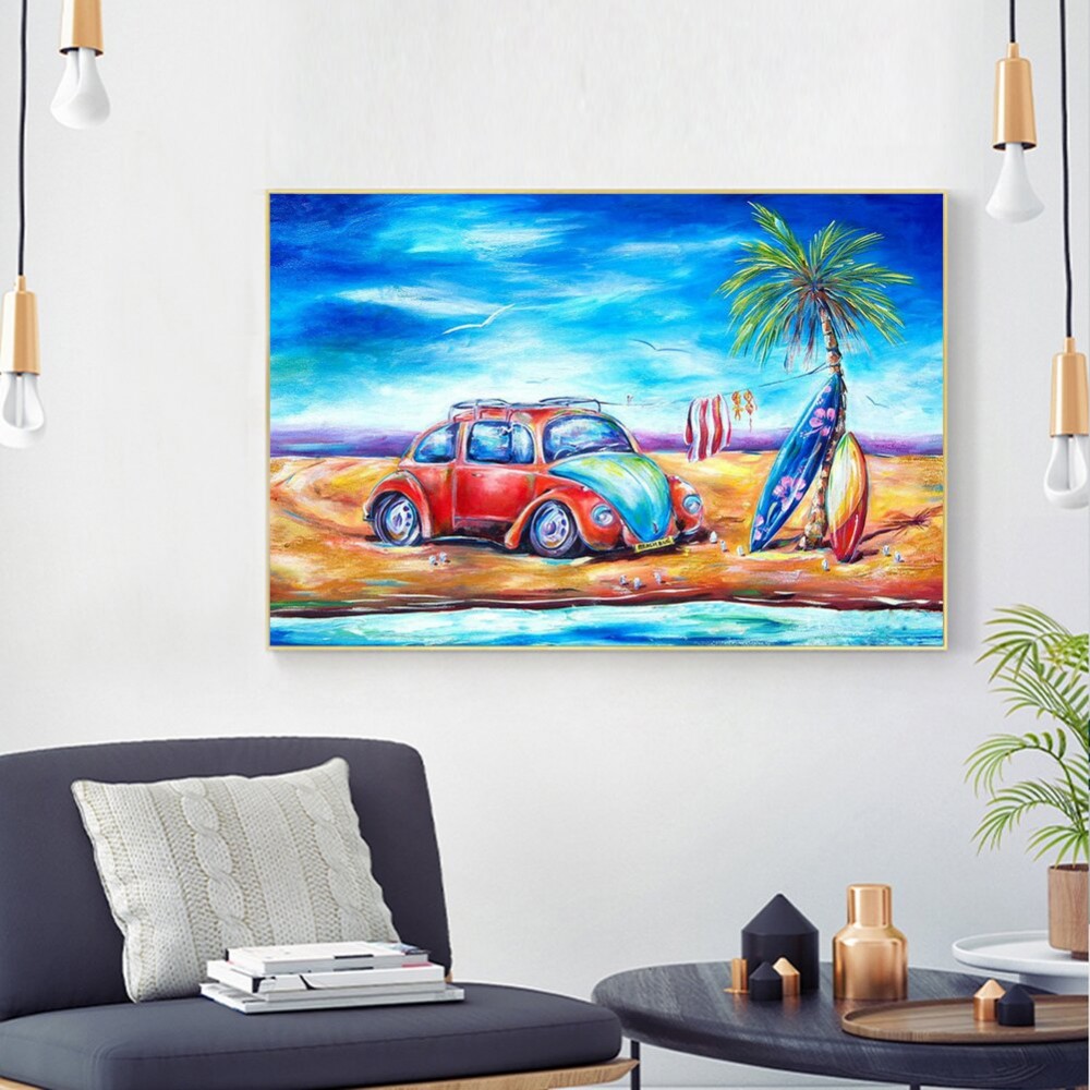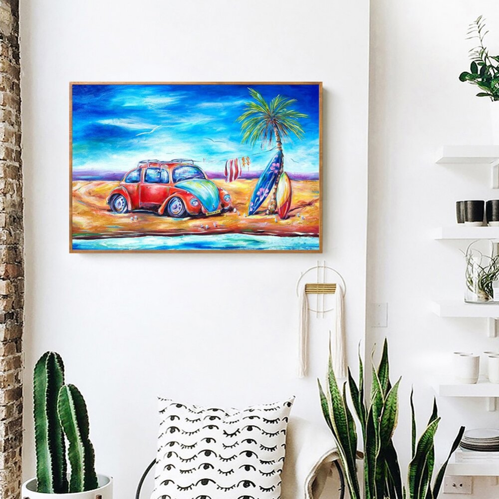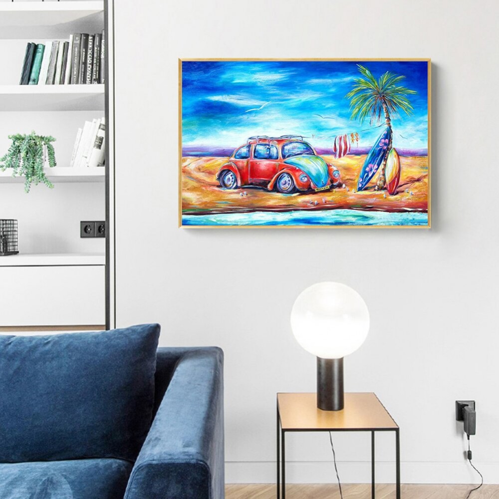 5D DIY Diamond Painting Seaside Car Full Round Drill Mosaic Wall Art Picture of Rhinestone Home Decoration