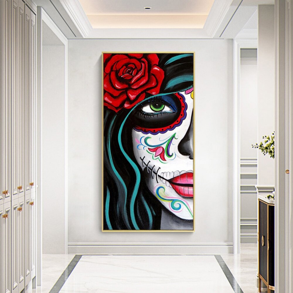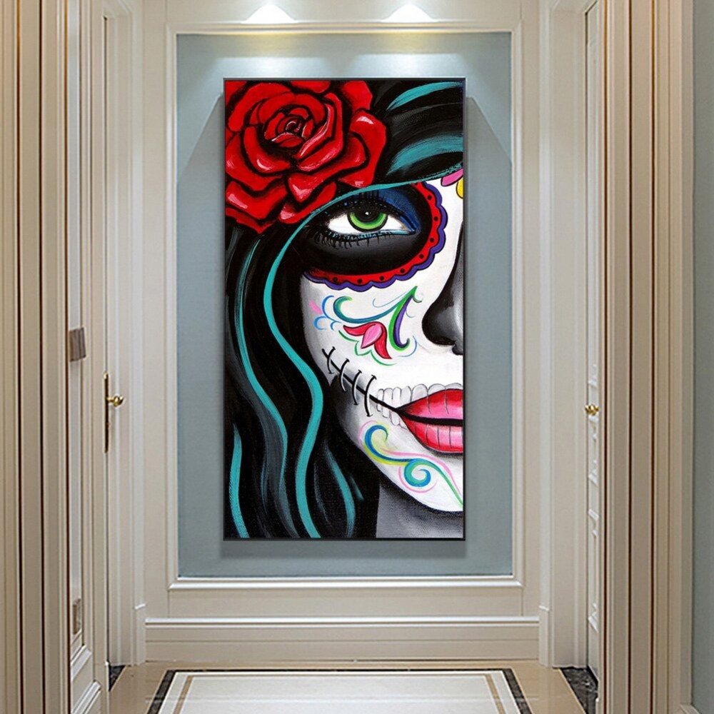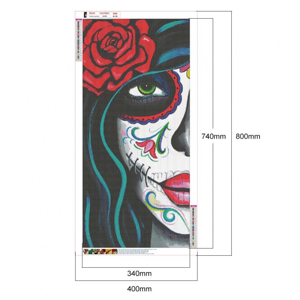 40x80cm Skull Girl Picture Rhinestones 5D DIY Full Round Drill Diamond Painting Handmade Mosaic Wall Craft Kits Gift Home Decor