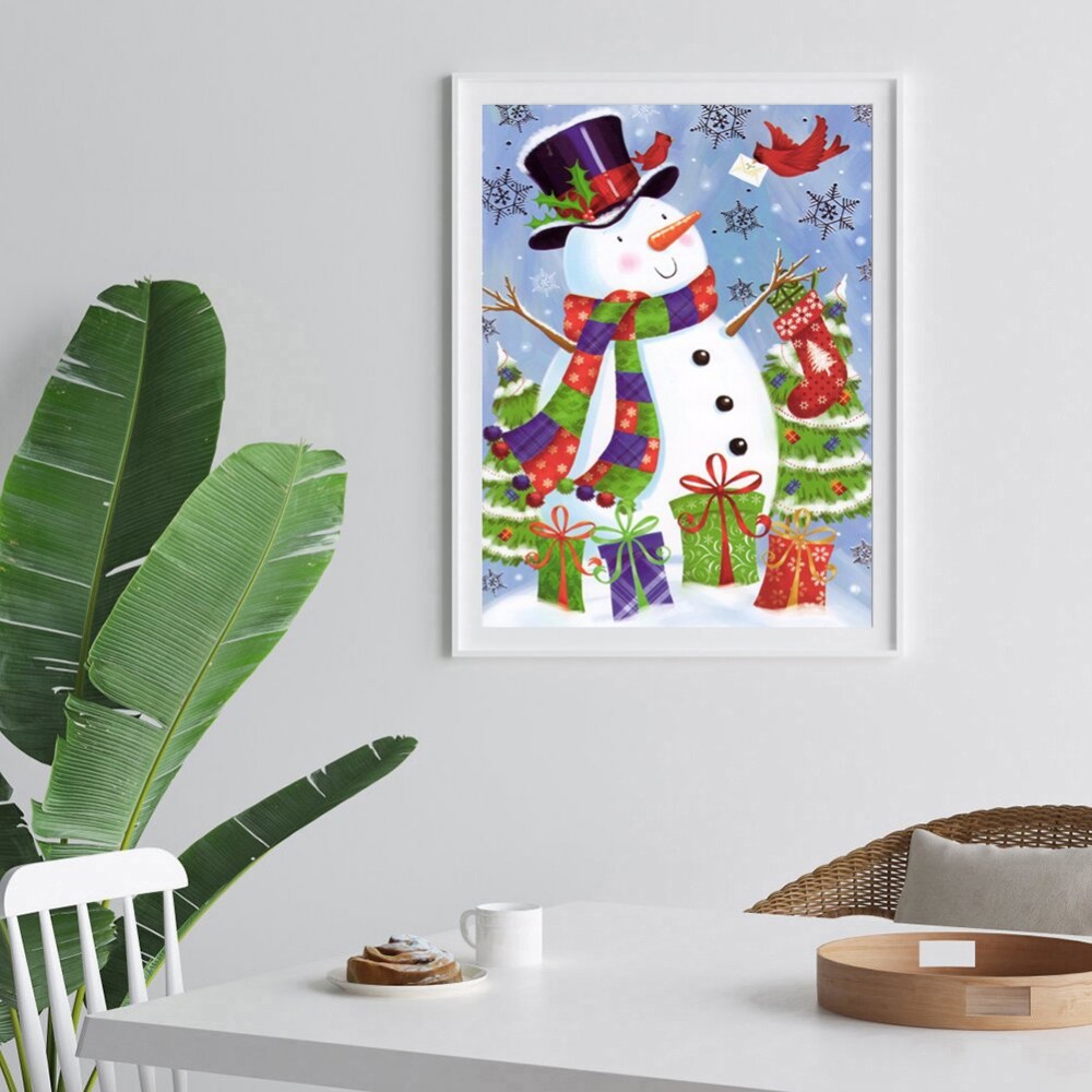 5D DIY Full Drill Round Diamond Painting Smile Snowman Diamond Embroidery Mosaic Kit Home Decor for Bead Art Wall Gift