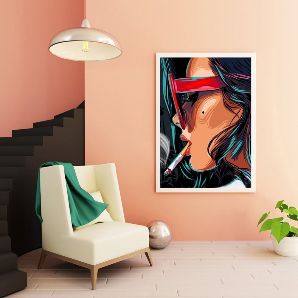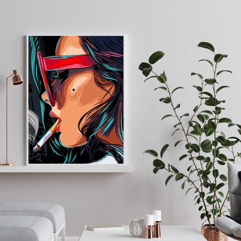 Smoking Girl 5D DIY Full Round Drill Rhinestones Diamond Painting Mosaic Kits Art Craft Home Decor Gifts