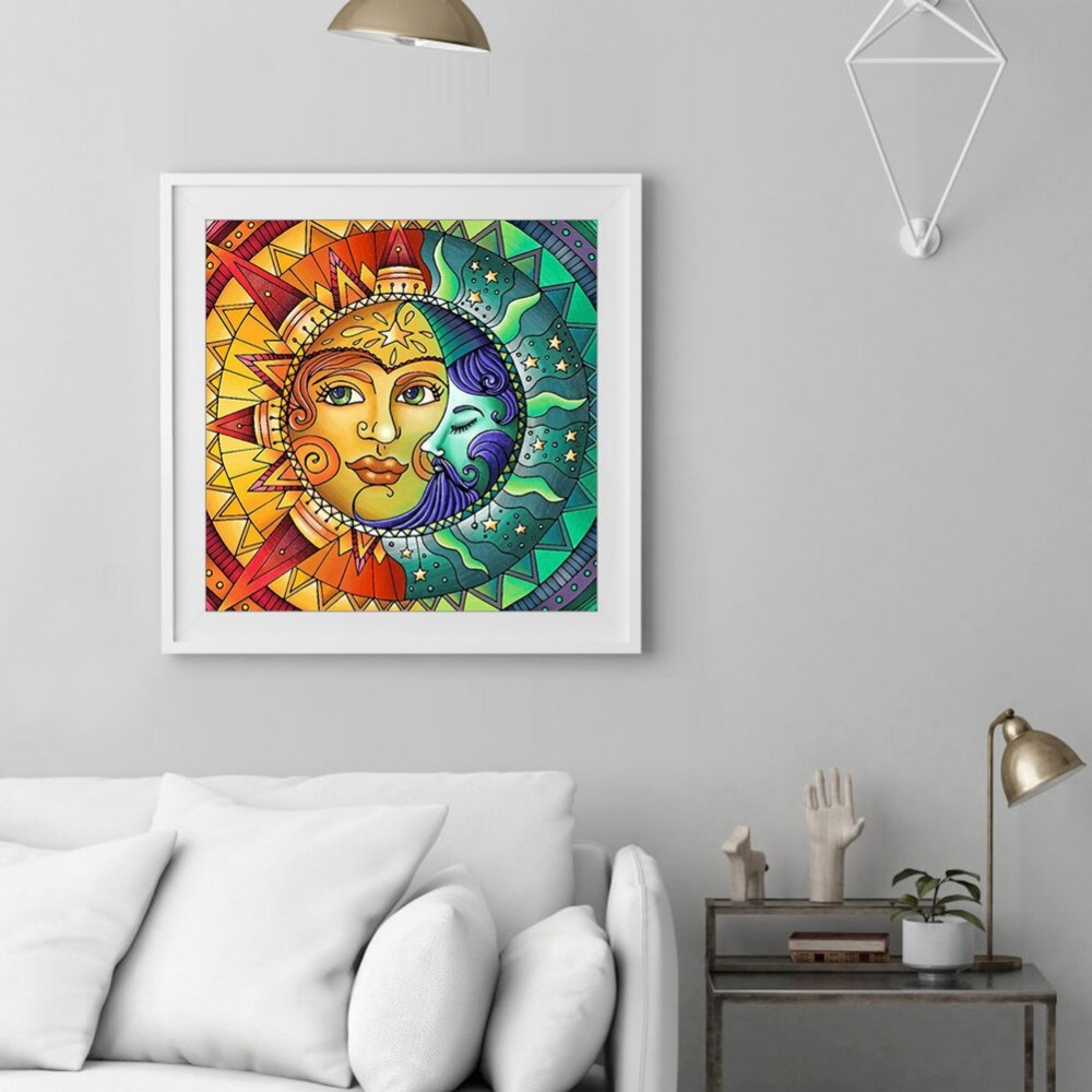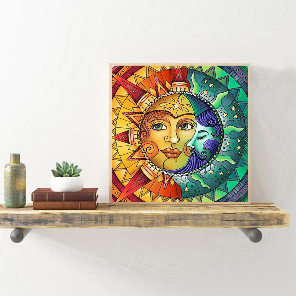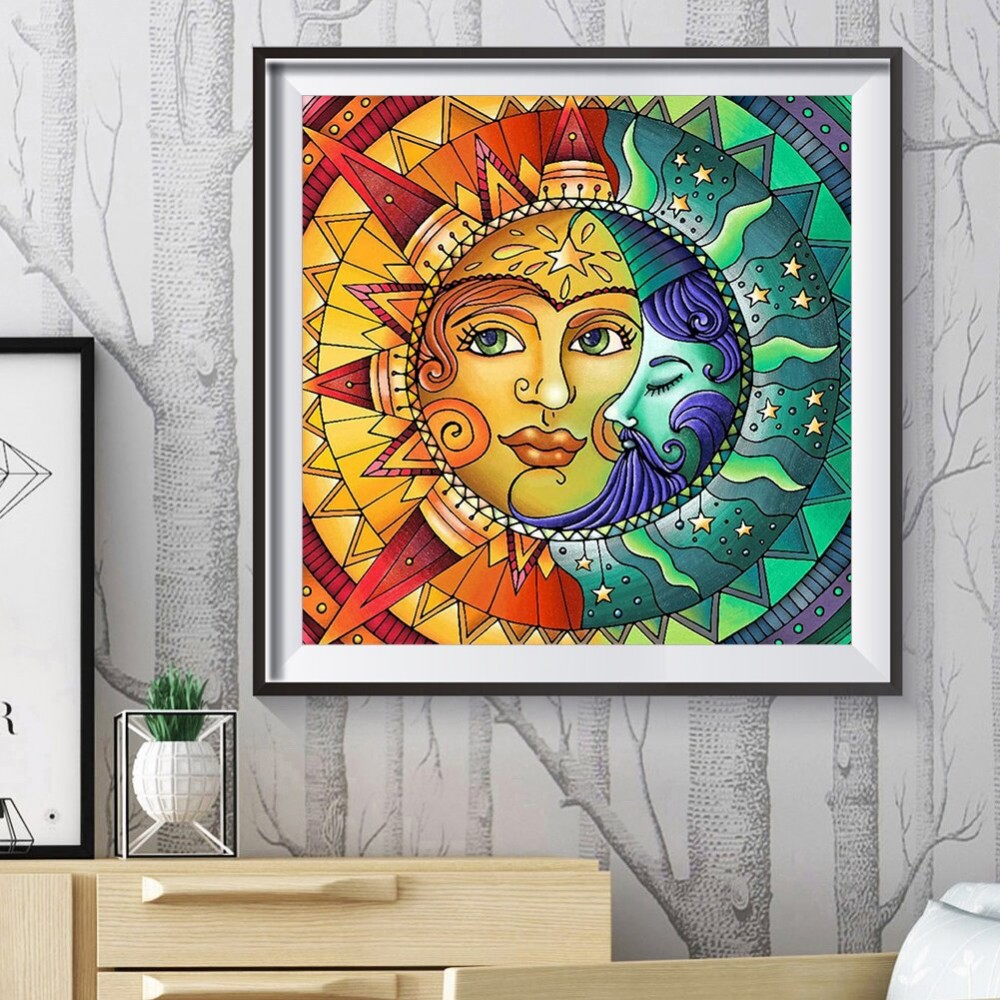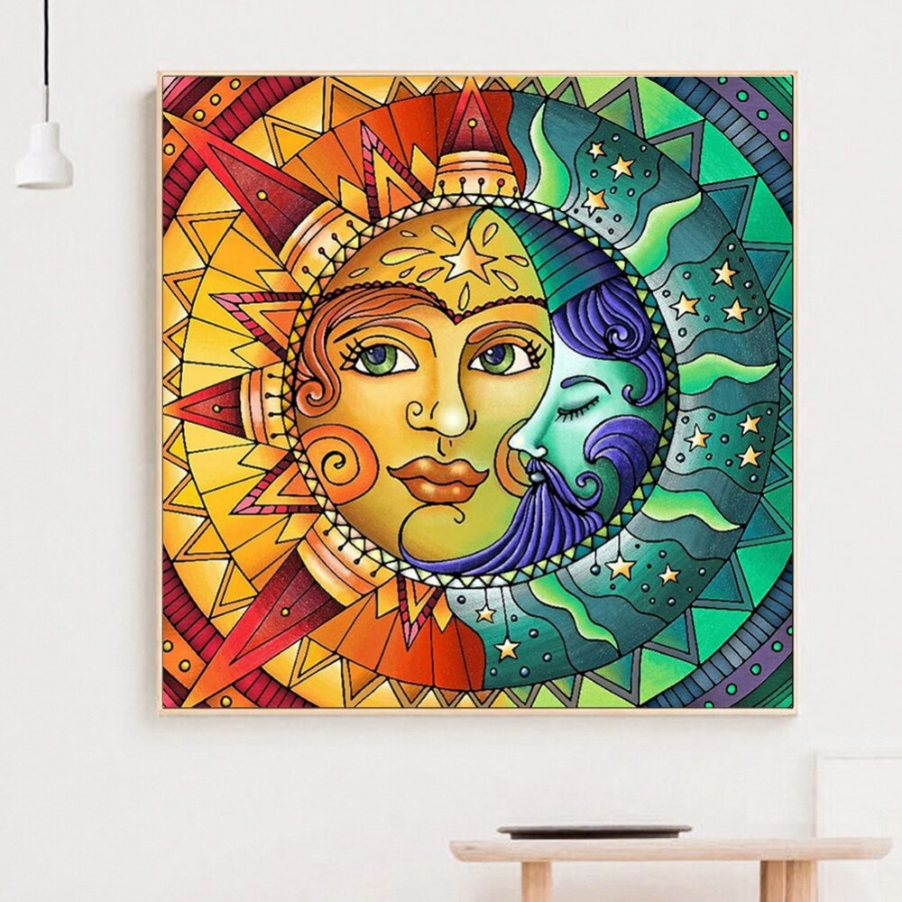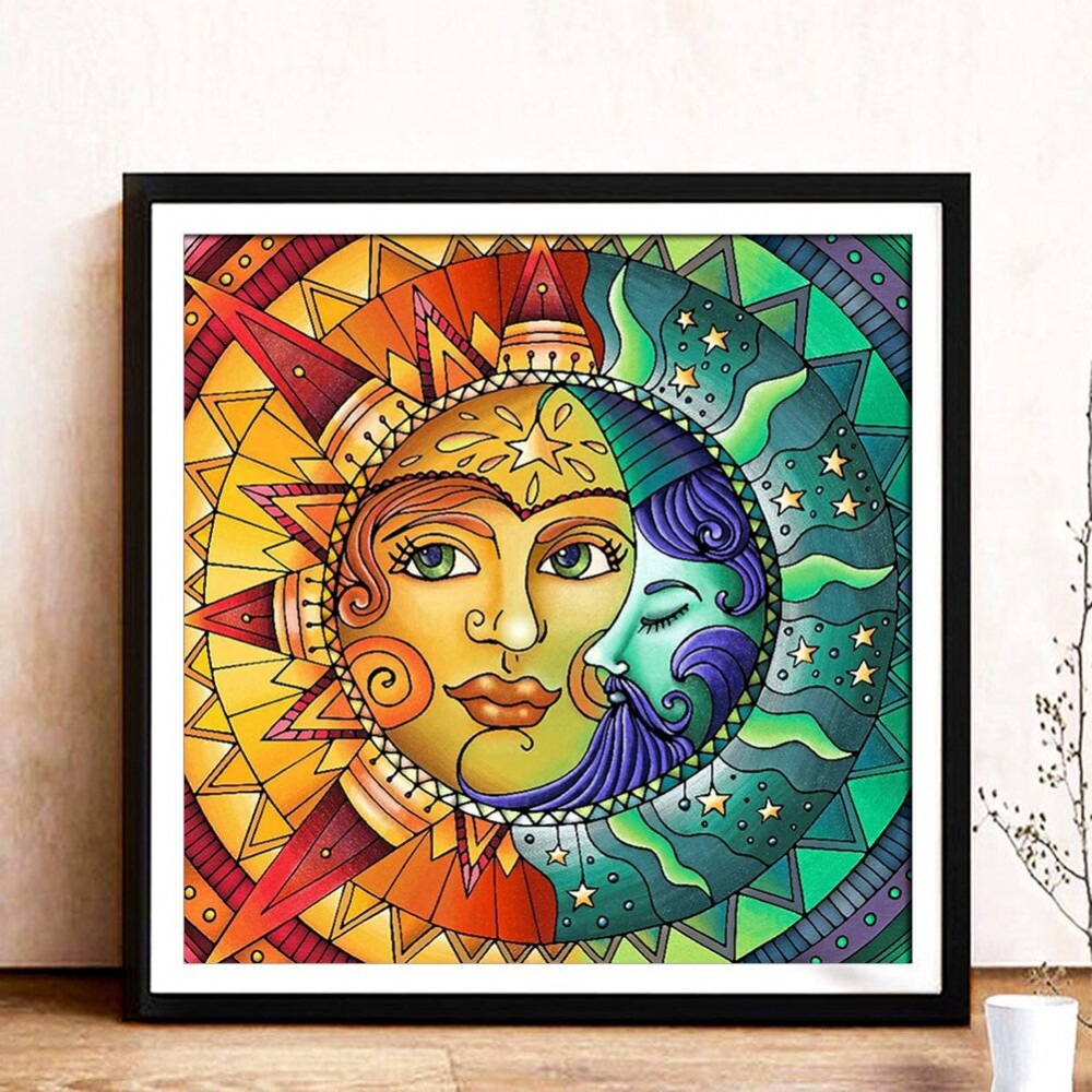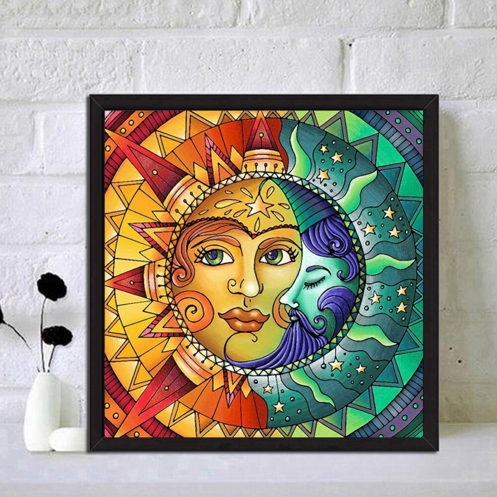 5D DIY Diamond Painting Sun Moon Full Round Drill Mosaic Wall Art Picture of Rhinestone Home Decoration