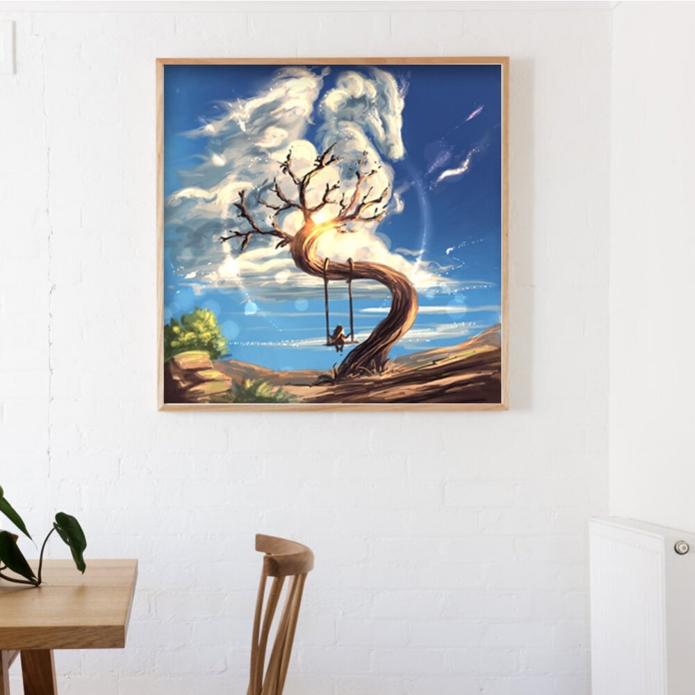 Swinging Girl 5D DIY Full Round Drill Rhinestones Diamond Painting Mosaic Kits Art Craft Home Decor Gifts
