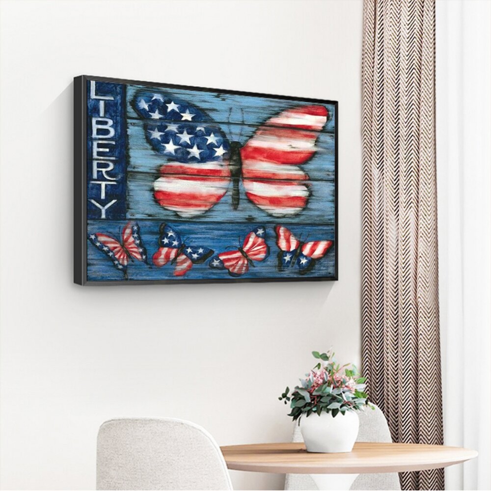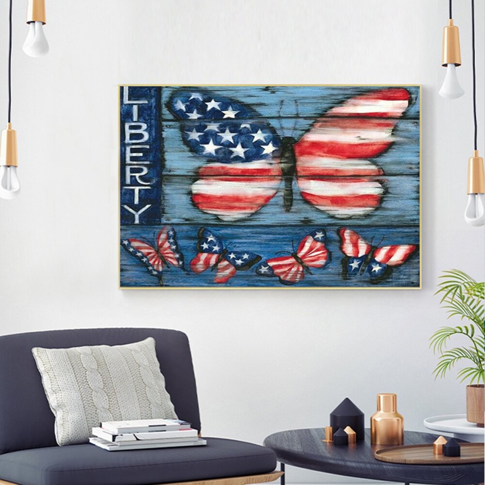 5D DIY Full Round Drill Diamond Painting US Flag Butterflies Resin Rhinestone Mosaic Wall Art Picture Kit Home Decoration