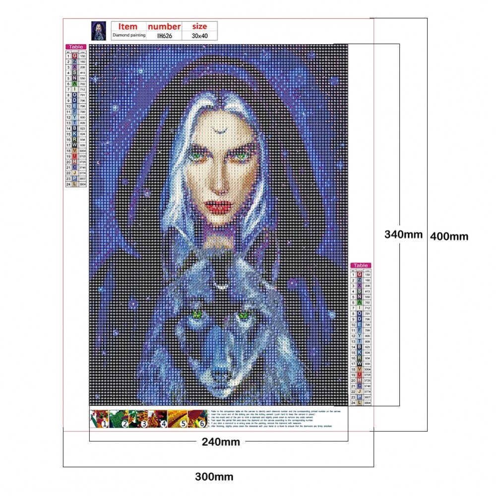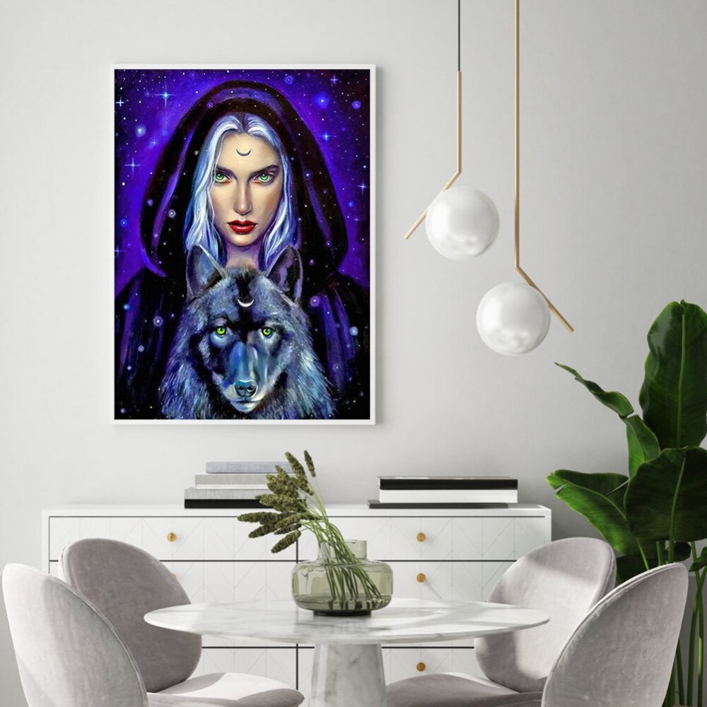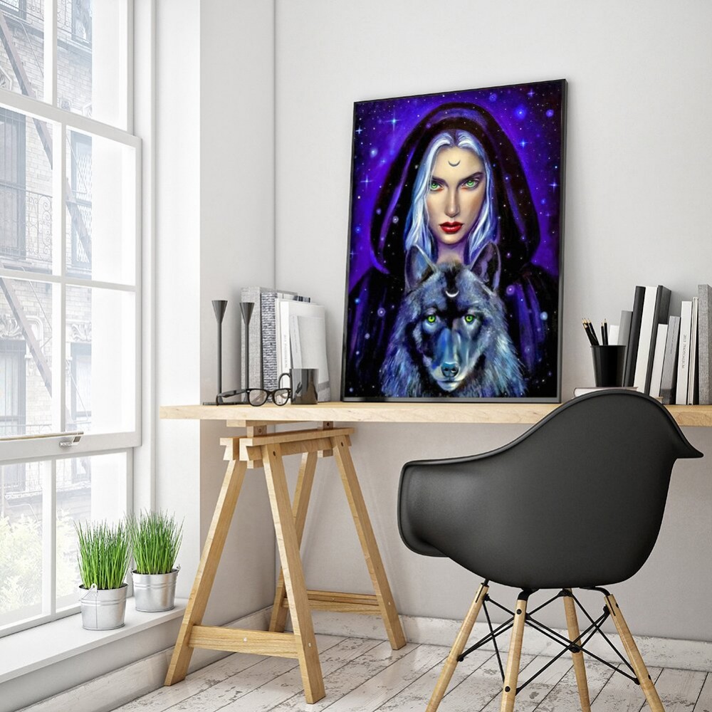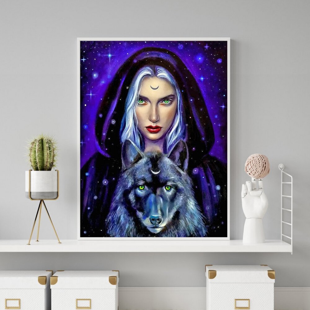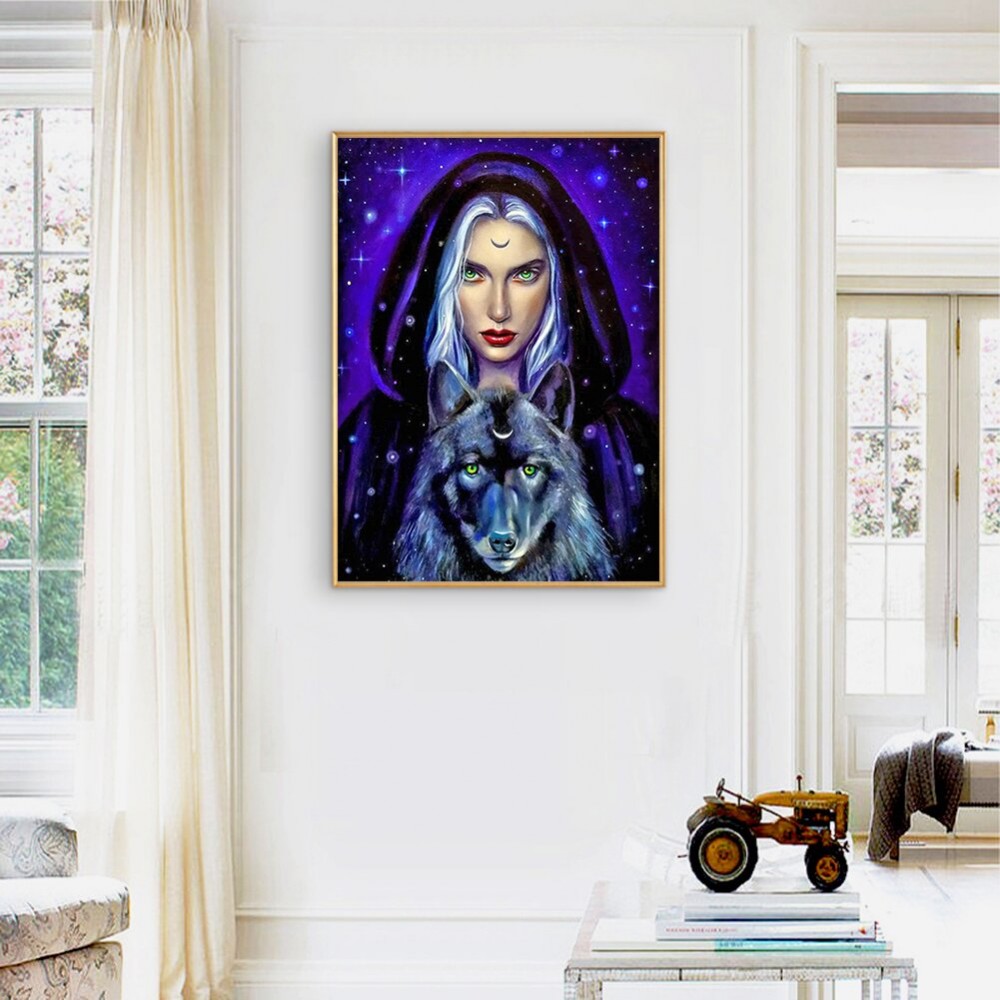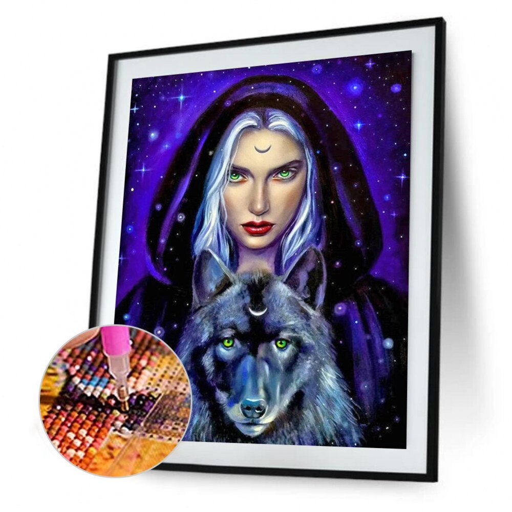 5D DIY Full Drill Round Diamond Painting Witch and Wolf Diamond Embroidery Mosaic Kit Home Decor for Bead Art Wall Gift