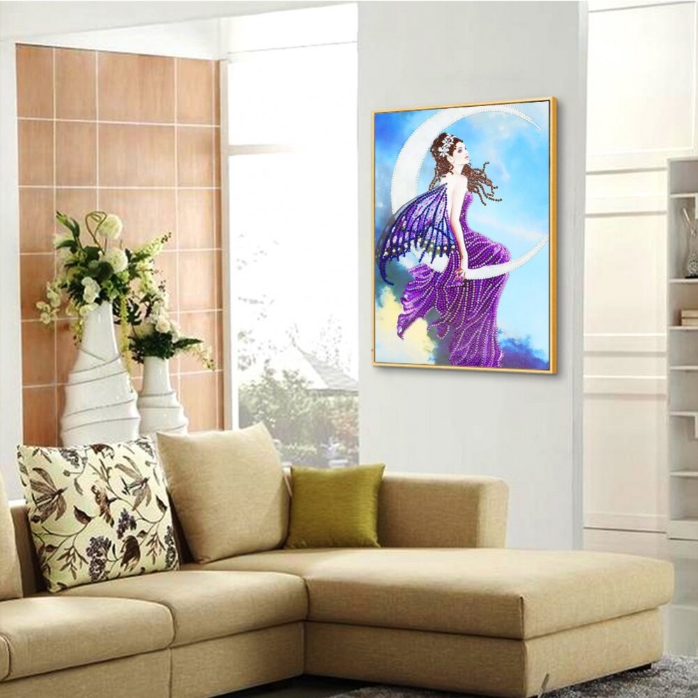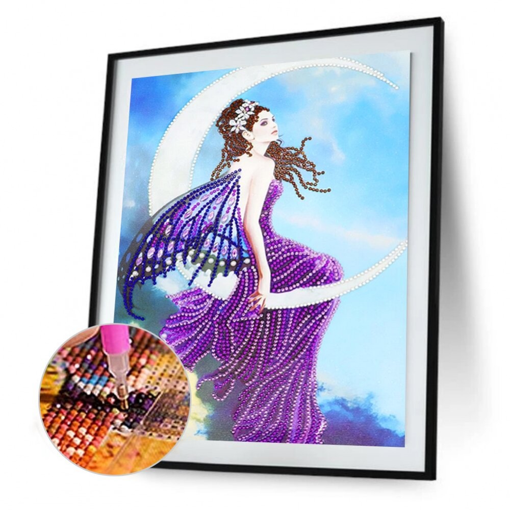5D DIY Partial Special Shape Diamond Painting Woman Sitting on Moon Resin Rhinestone Mosaic Wall Art Picture Kit Home Decoration