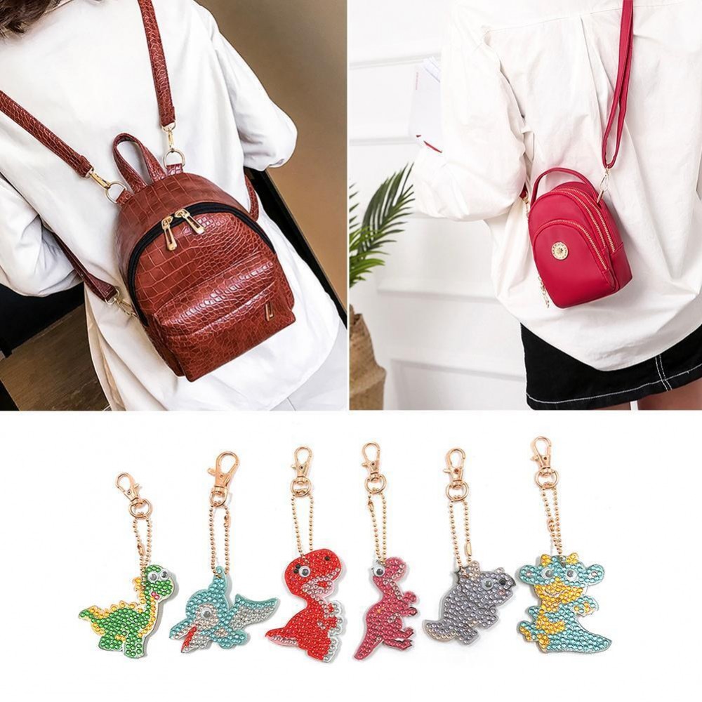 1pcs DIY Keychain Handmade Cartoon Dinosaur Diamond Painting Full Drill Embroidery Cross Stitch Mosaic Rhinestone Decor Pendant