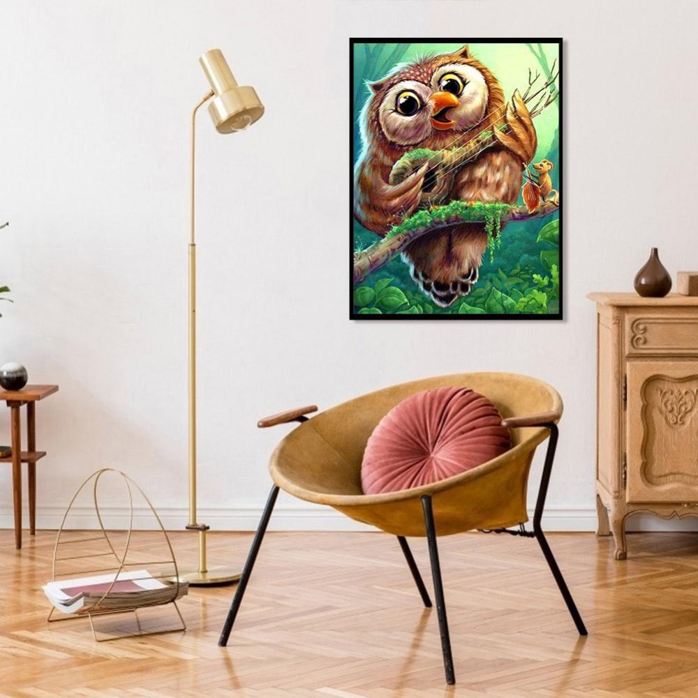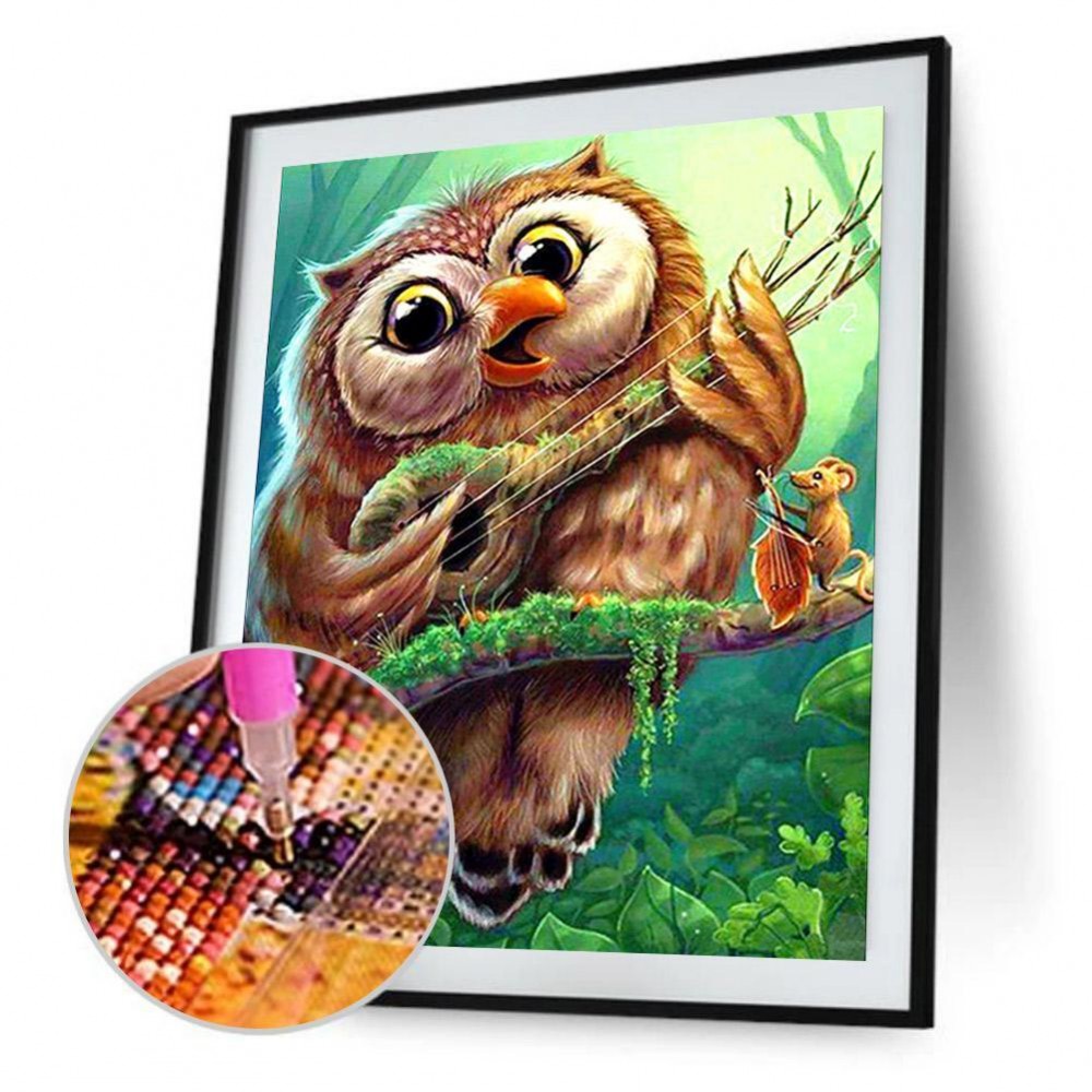 5D DIY Full Drill Round Diamond Painting Night Bird Cross Stitch Embroidery Mosaic Kit Home Decor Needlework