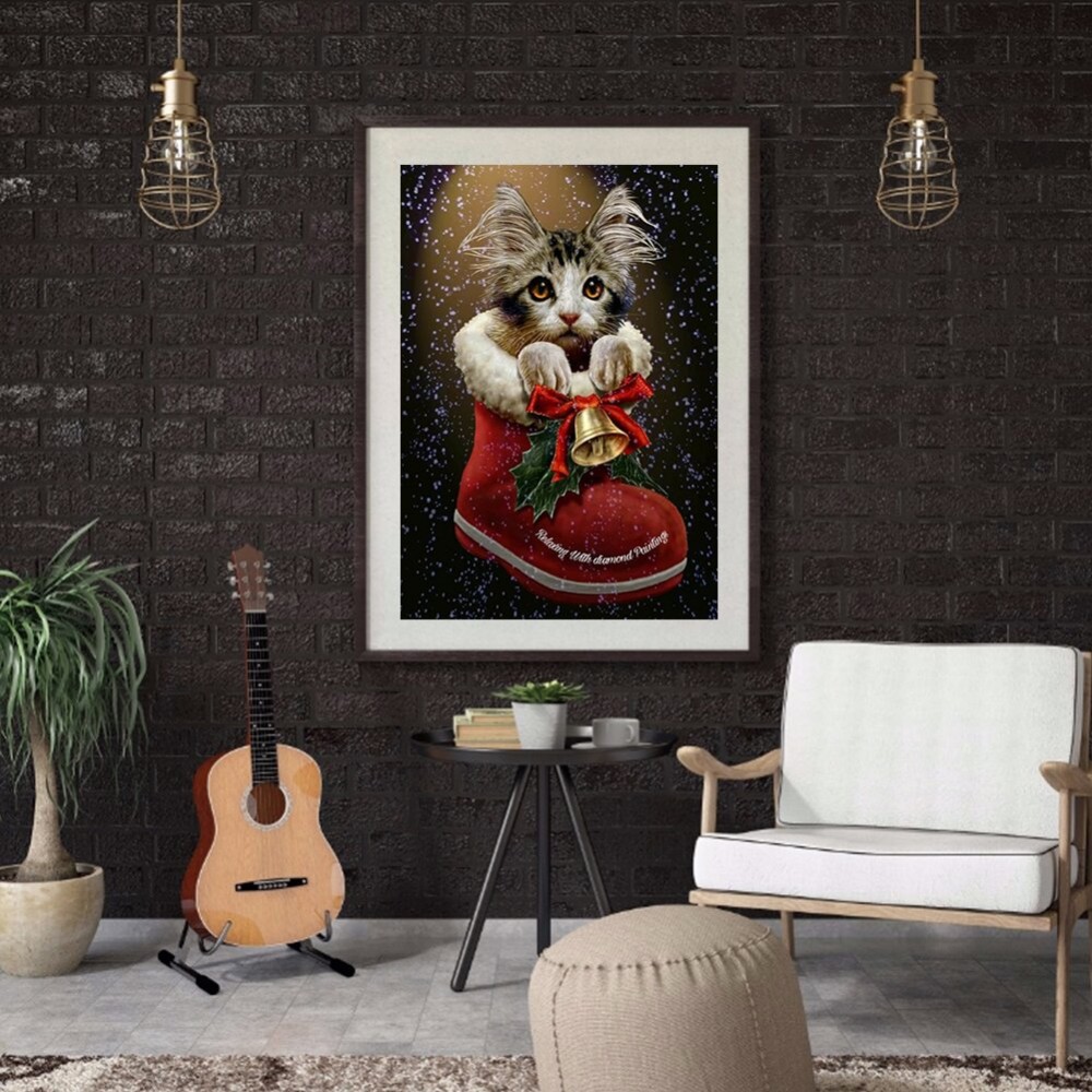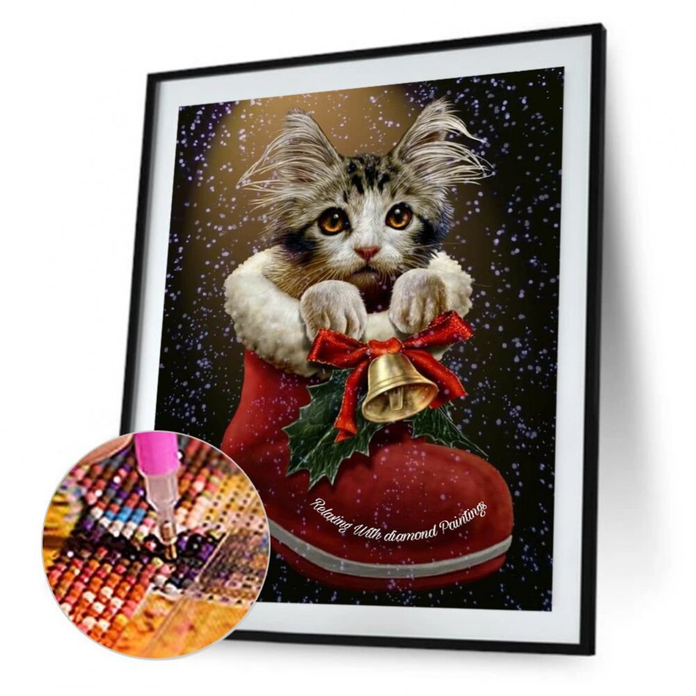 5D DIY Diamond Painting Cat in Shoe Full Round Drill Mosaic Wall Art Picture of Rhinestone Home Decoration