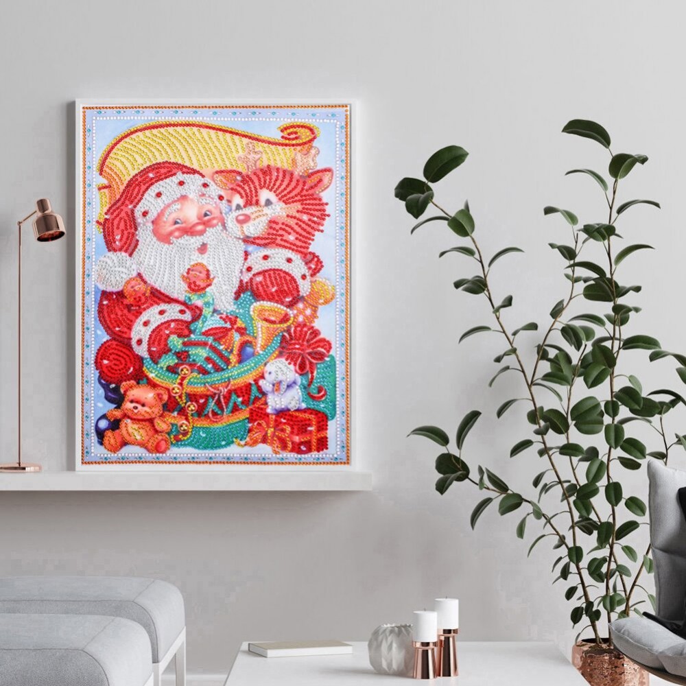 12x16 inch 5D Irregular Diamond Painting Santa with Gifts Mosaic Wall Art Picture of Rhinestone DIY Kit Home Decoration