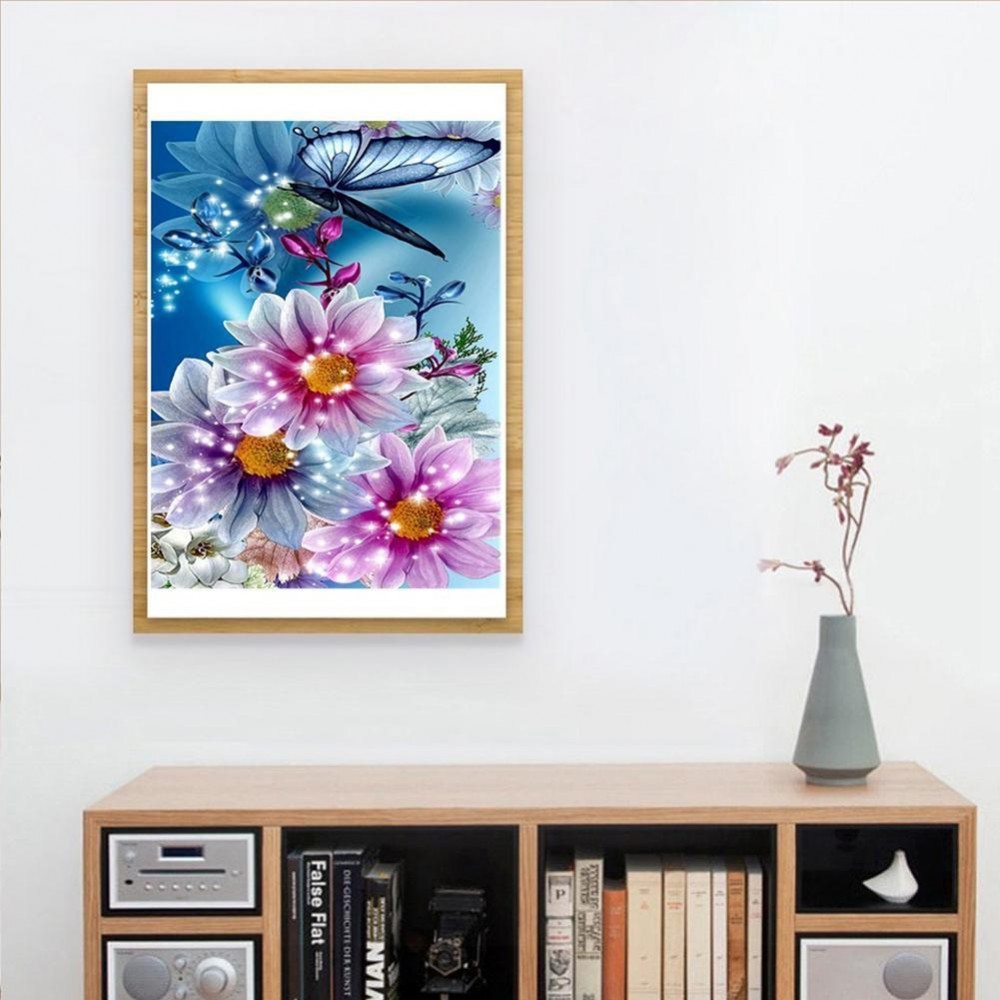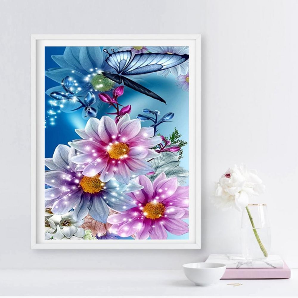 5D DIY Full Drill Butterfly Flower Diamond Embroidery Painting Cross Stitch Round Rhinestones Mosaic Kits Home Wall Decor