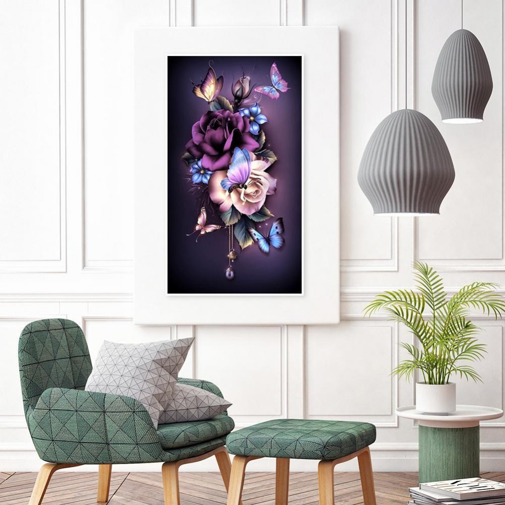Flower Butterfly - Full Round Diamond Painting(30*48cm)