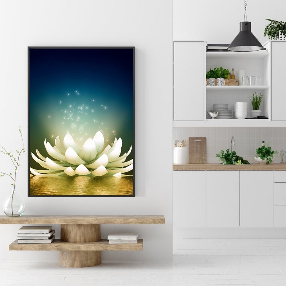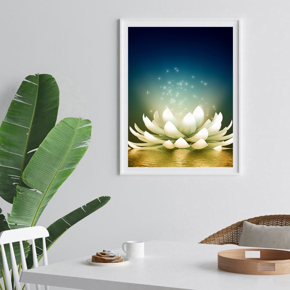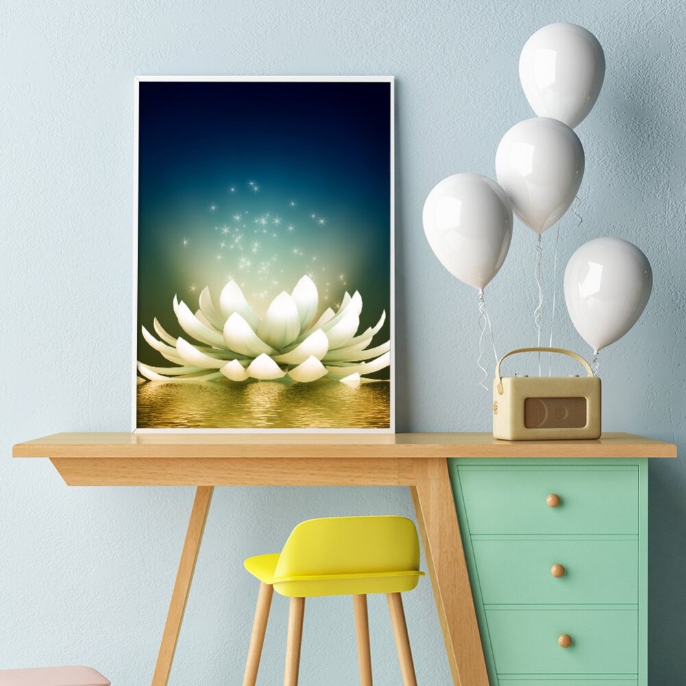 30x40cm White Pond Lily Picture Rhinestones 5D DIY Full Round Drill Diamond Painting Handmade Mosaic Wall Craft Kits Gift Home Decor