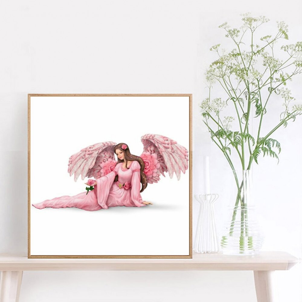 5D Full Round Drill Mosaic Craft Picture DIY Pink Angel Diamond Painting Rhinestone Poster Home Wall Decor Gift