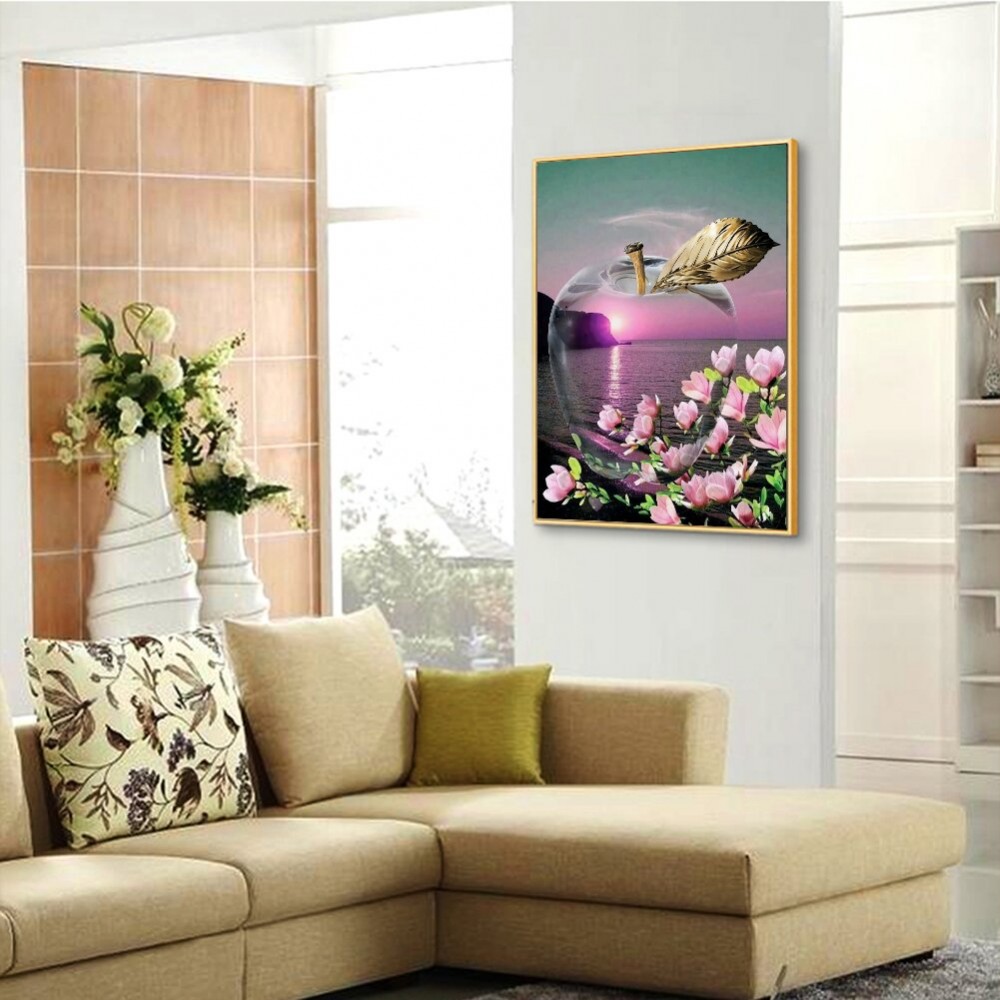 Apple Landscape 5D DIY Full Round Drill Rhinestones Diamond Painting Mosaic Kits Art Craft Home Decor Gifts