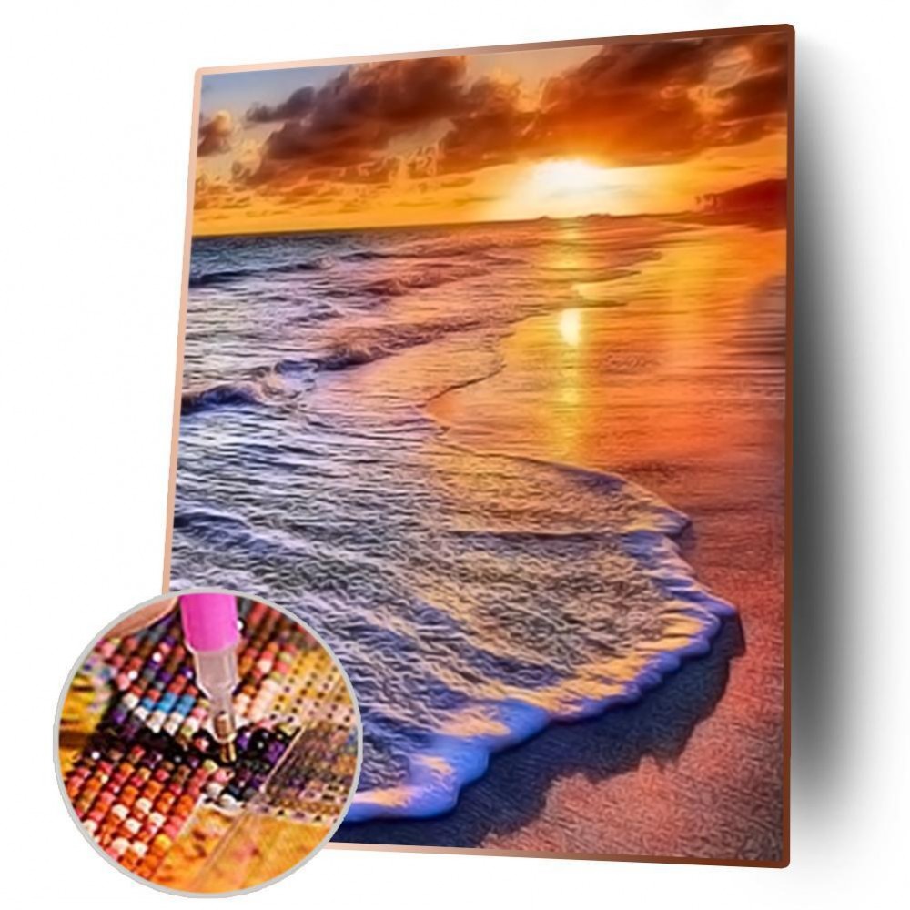 5D DIY Full Drill Round Diamond Painting Evening Beach Cross Stitch Embroidery Mosaic Kit Home Decor Needlework