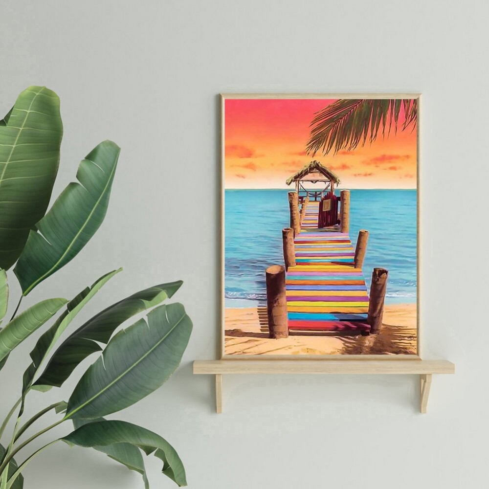 5D DIY Full Round Drill Diamond Painting Beach Landing Stage Resin Rhinestone Mosaic Wall Art Picture Kit Home Decoration