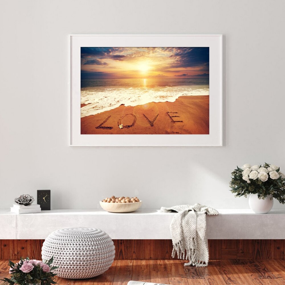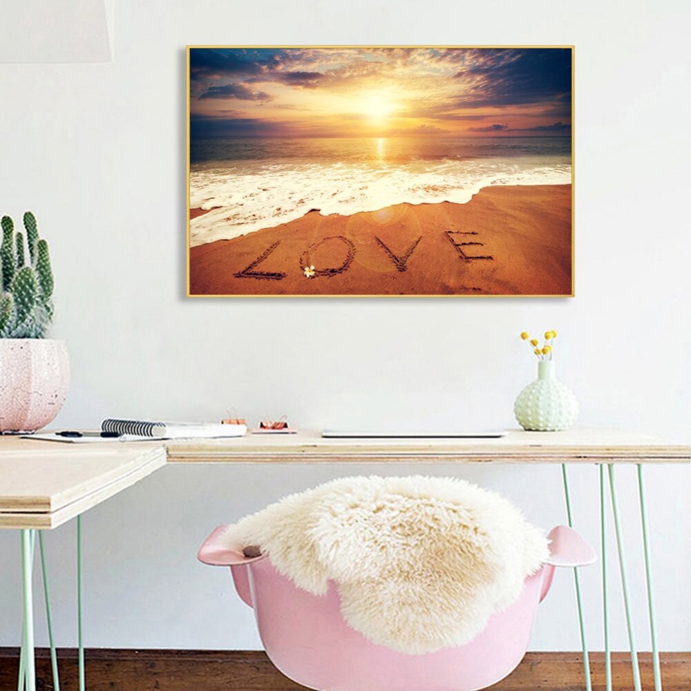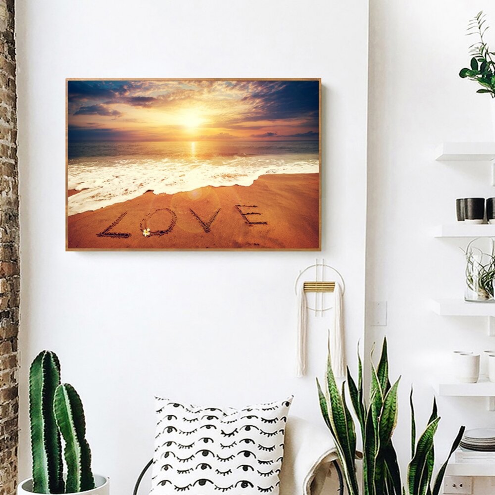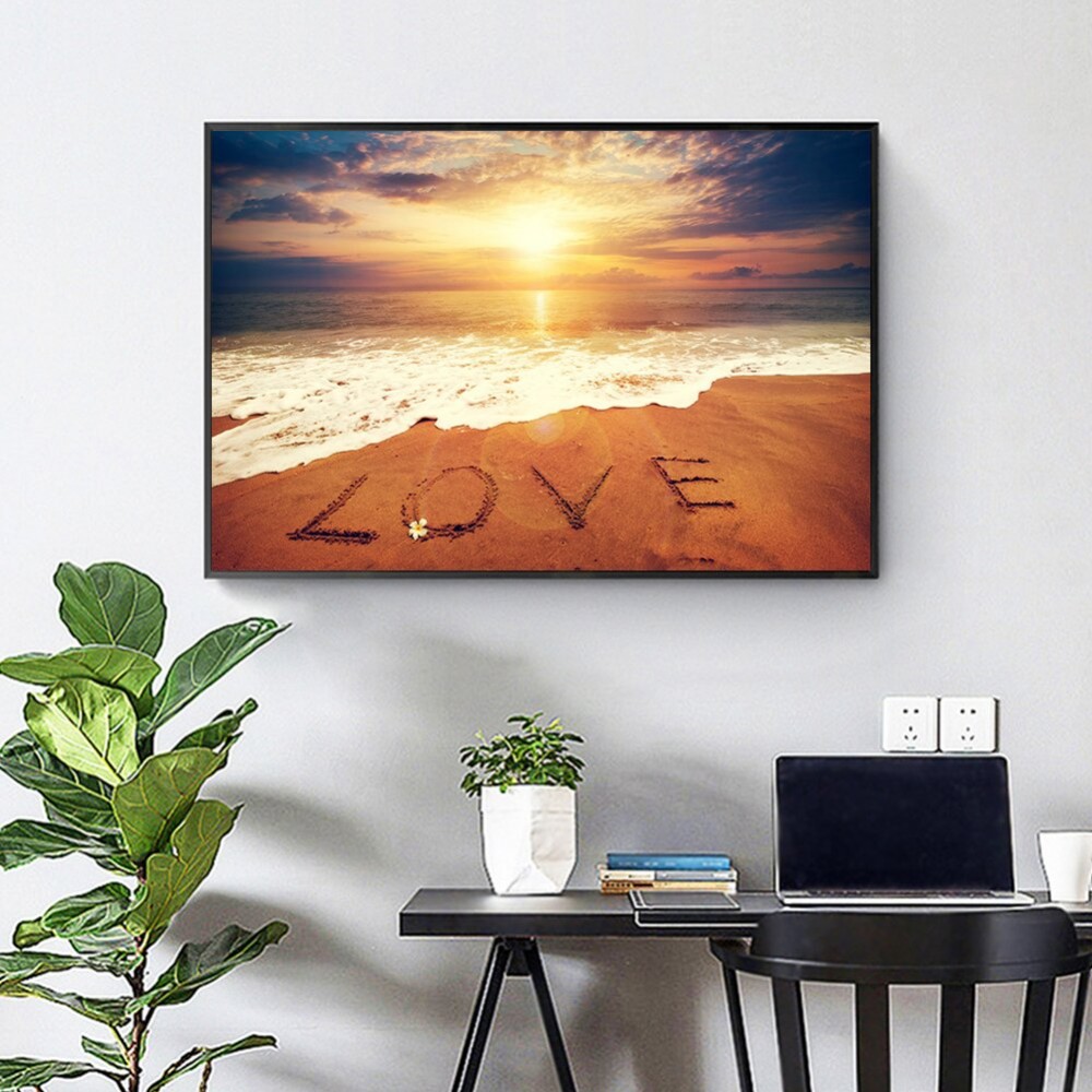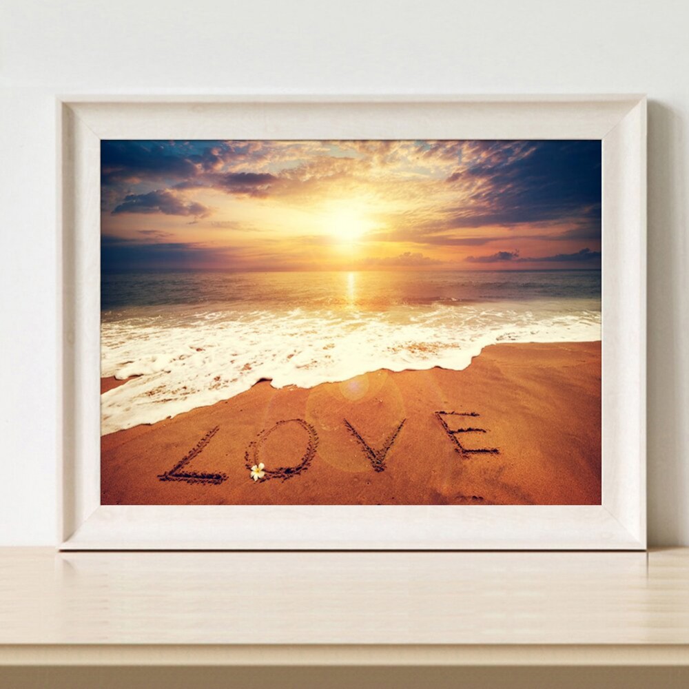 5D DIY Full Drill Round Diamond Painting Beach LOVE Diamond Embroidery Mosaic Kit Home Decor for Bead Art Wall Gift