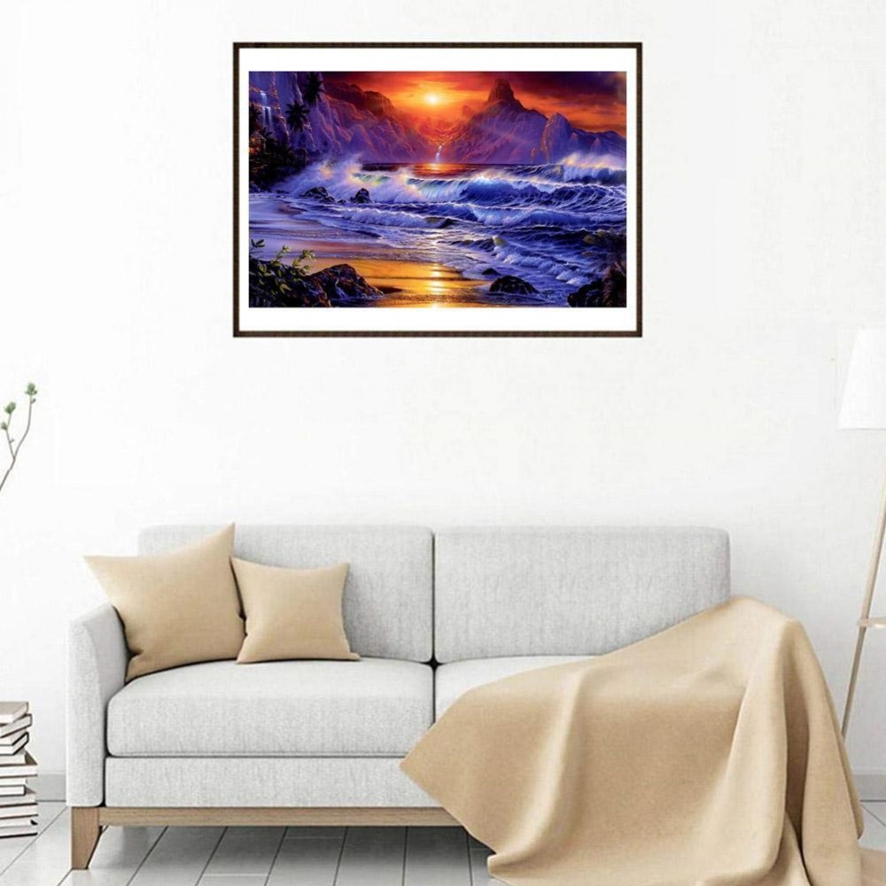 5D DIY Full Drill Diamond Painting Sea Wave Cross Stitch Embroidery Mosaic Kit Craft Round Rhinestone Wall Art Needlework Home Decoration